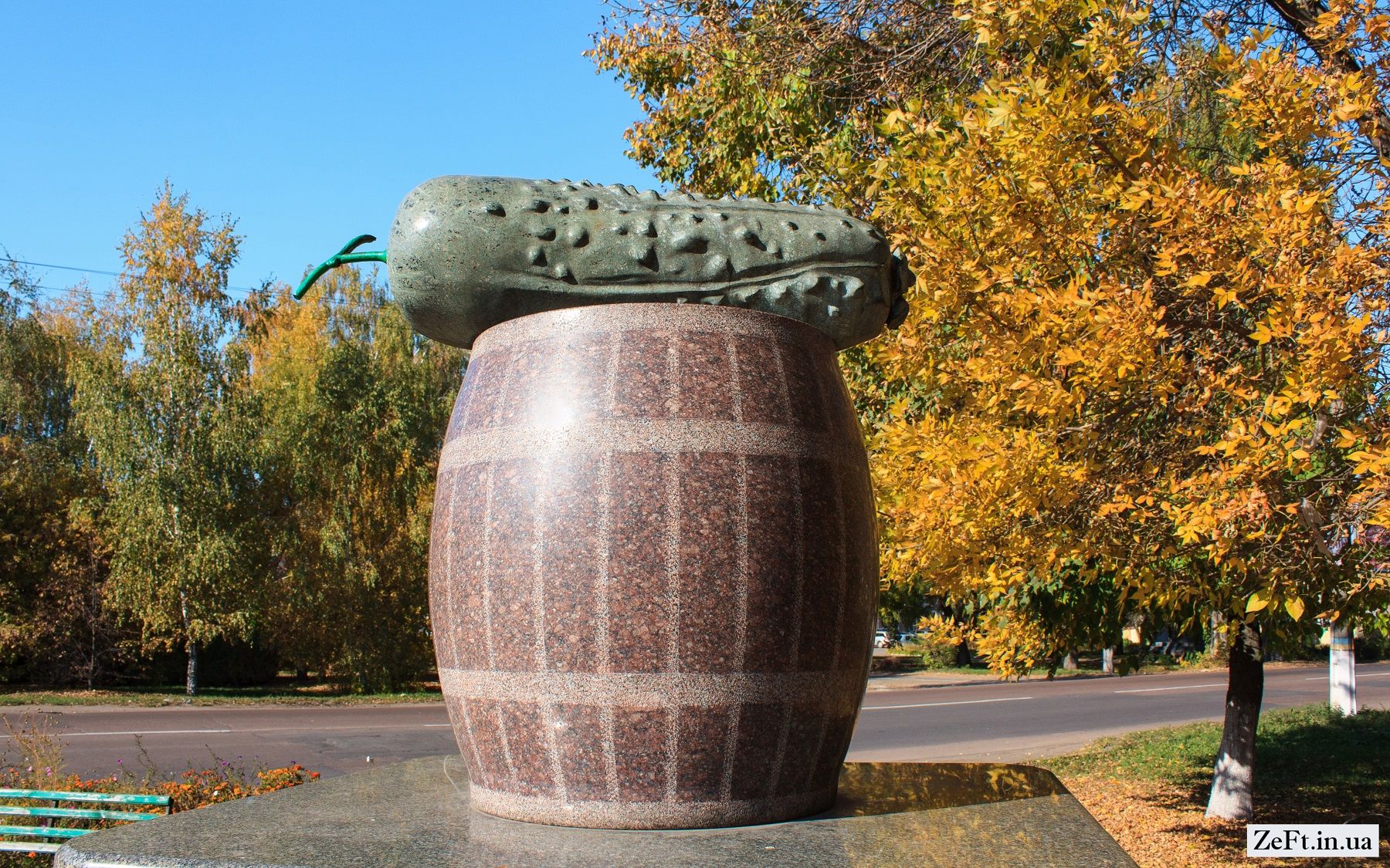 Пам’ятник ніжинському огірку відкрили в 2005 році поруч із Ніжинським консервним заводом. І хоч у місті є багато пам’яток архітектури, огірок має особливе значення, місцеві жителі називають меморіал символом міста.