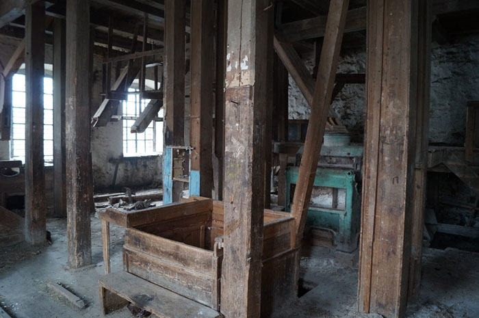 Спочатку занепала олійня, припинили виробляти крупи, а згодом і помел. Нині чотириповерхова пам’ятка старовини стоїть без вікон і дверей. Крізь отвори можна побачити залишки механізмів.