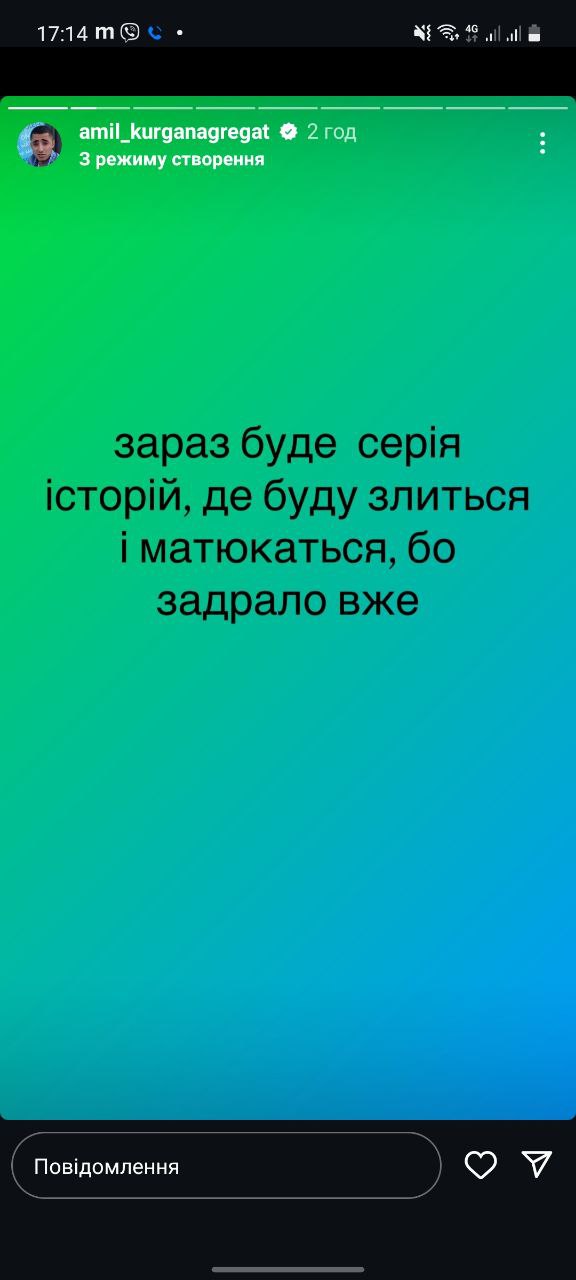 Учора учасник гурту Аміль Насіров почав свої Instagram-історії з допису: «Зараз буде серія історій, де буду злитися і матюкатися, бо вже задрало».