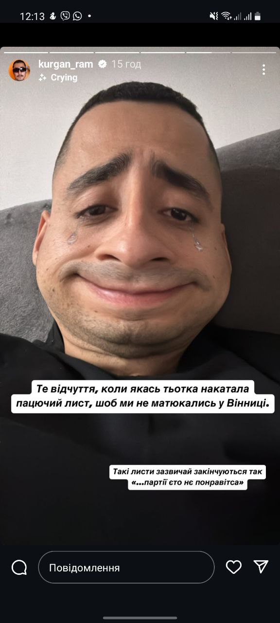Раміль, другий учасник гурту, у свою чергу виклав дотепне сторіс з підписом:
