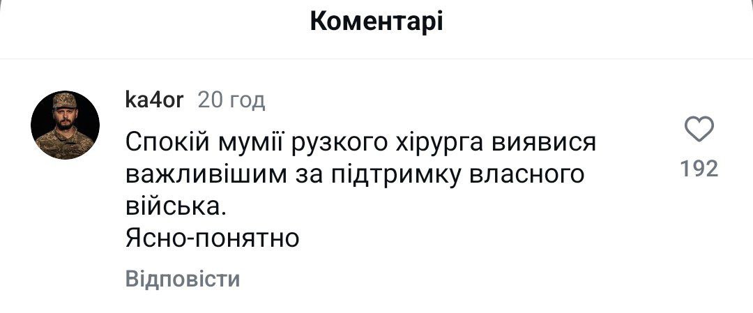 «Спокій мумії руского хірурга виявився важливішим за підтримку власного війська. Ясно-понятно».