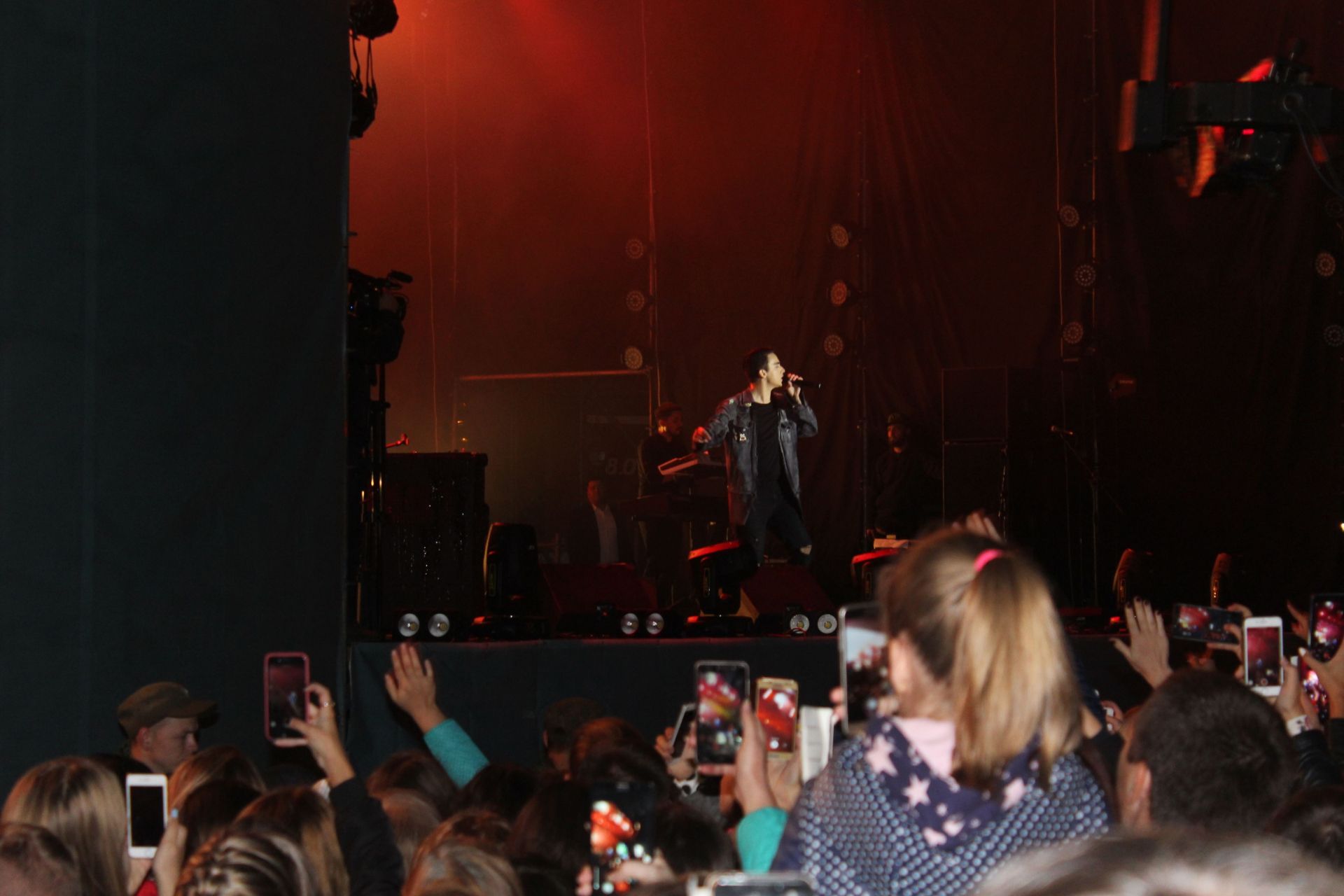 Впевненого хлопця зустрічали не лише юними захопленими поглядами та оплесками, а й іронічними коментарями про те, що Костя знає, хто від нього «тащиться». Задавши енергійний ритм, він зробив перерву, щоб привітати вінничан й побажати їм завжди бути щирими, не боятися своїх емоцій – всього того, що допомогло йому набути слави чуйного романтика, подекуди сентиментального, але обожнюваного. Опісля він заспівав «Happy birthday to you» для Вінниці.