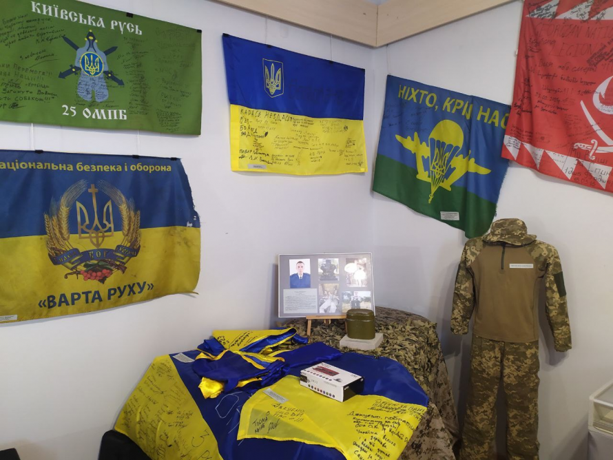 Також на виставці представили прапори з автографами бійців 120 та 109 окремих бригад територіальної оборони, 61 окремої піхотної єгерської бригади, 28 окремої механізованої бригади, 72 окремої механізованої бригада, 59 військового мобільного госпіталю та зведених загонів Міністерства внутрішніх справ України.