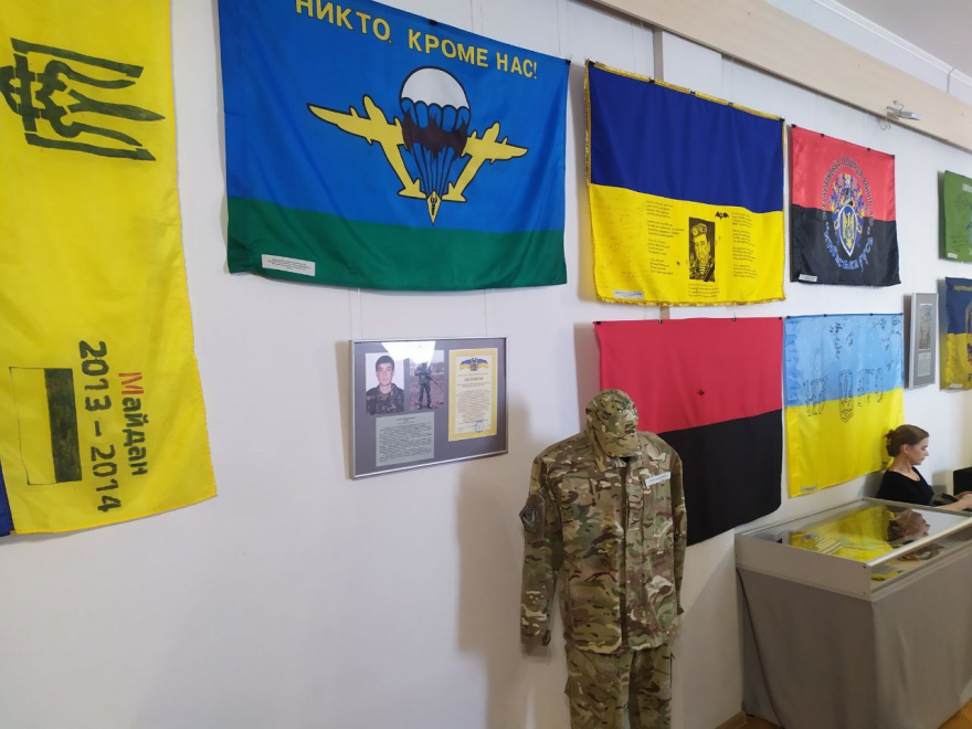 З синьо-жовтим стягом сьогодні воюють наші воїни проти російських окупантів. Захисники з Вінниччини боронять Україну у складі різних з’єднань та військових формувань. Серед представлених на виставці стяги:
