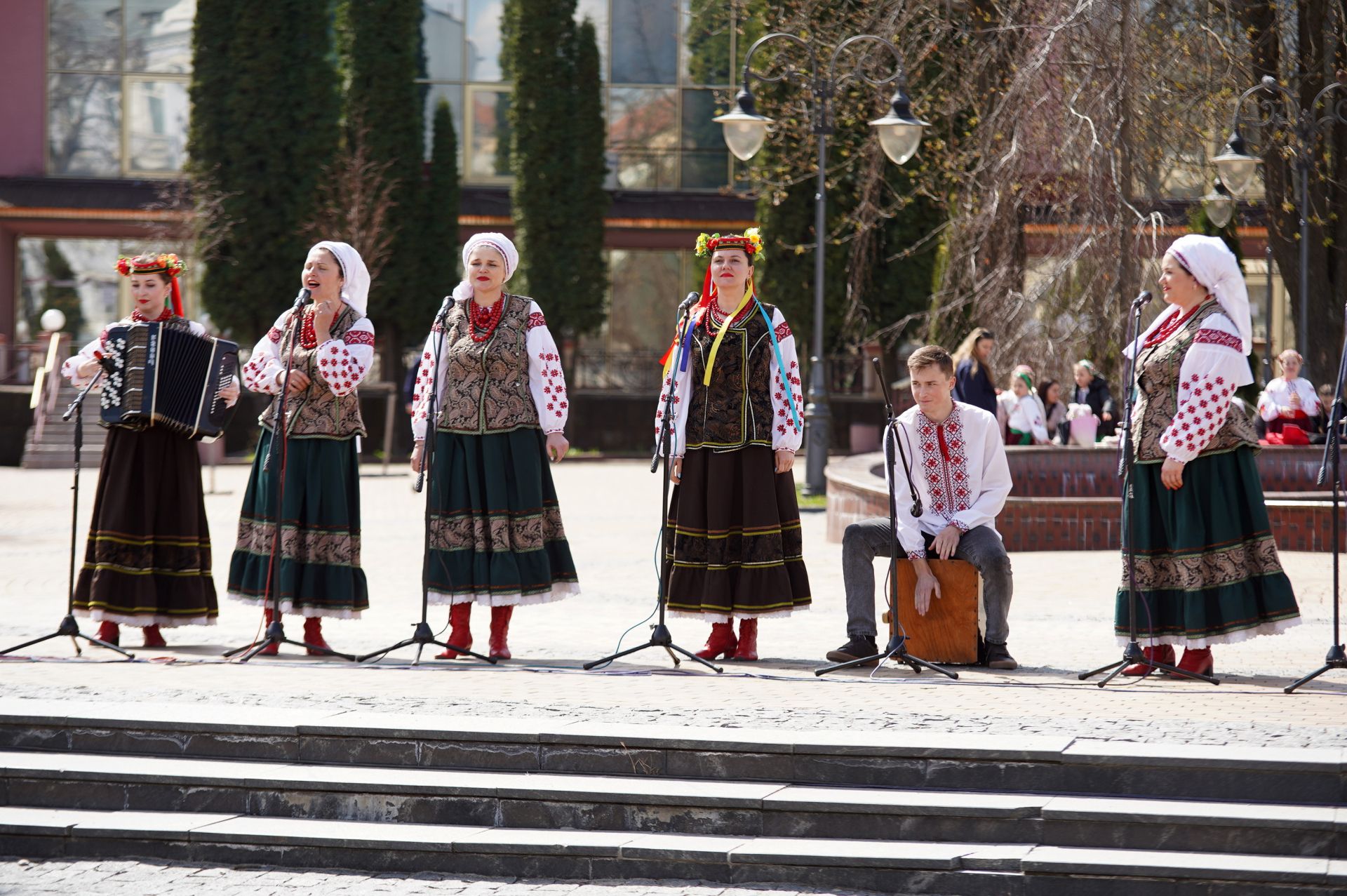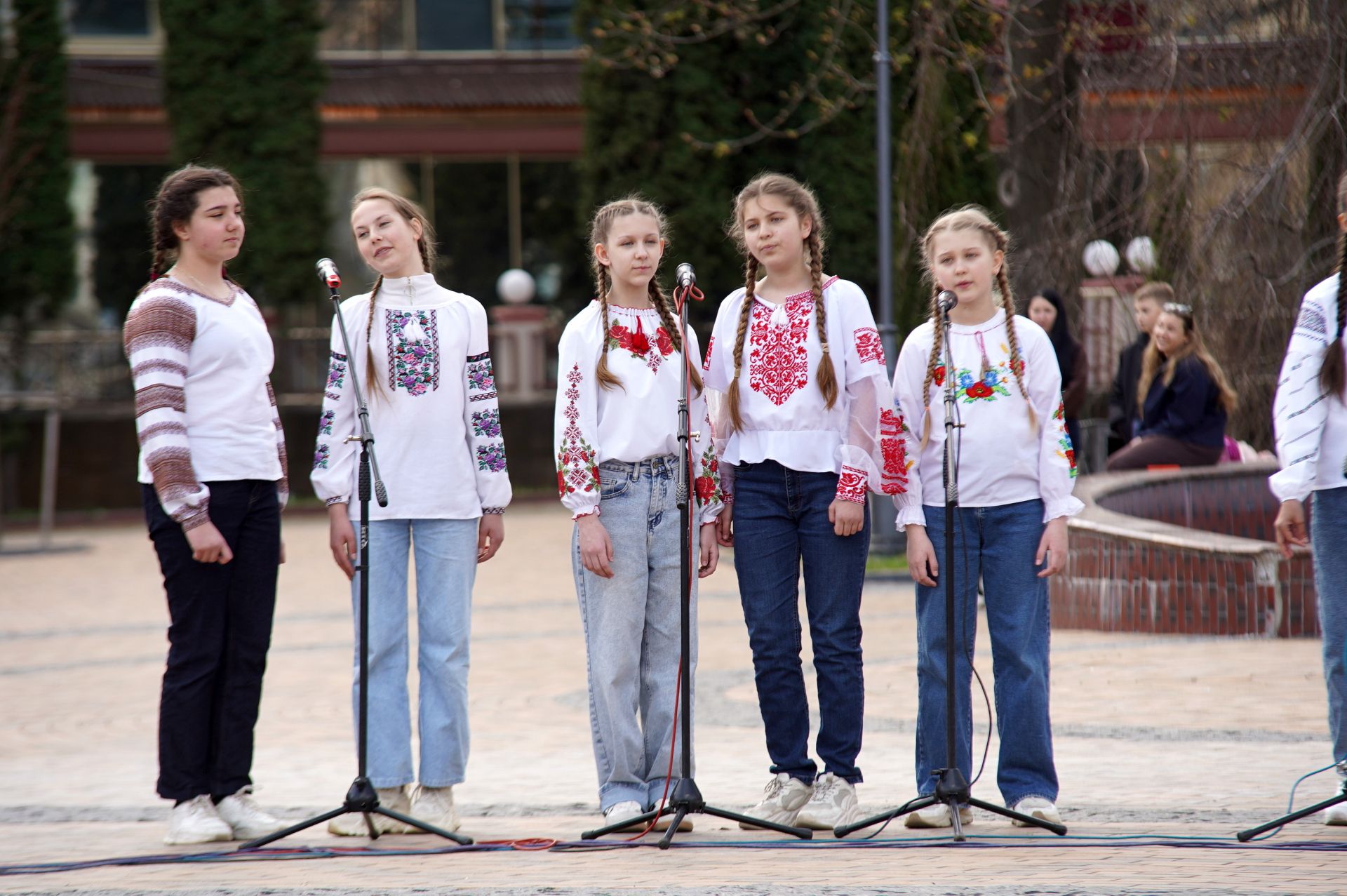 Імпровізовану сцену облаштували поблизу фонтану «Мушля». Тут виступили вокальні ансамблі «Веселі дзвіночки», «Лада» та театр пісні «Орфей». Хореографічні номери показали колективи «Гілея» та «Мальви», а народний ансамбль «З роси й води» виконав автентичні веснянки. Учасники заходу через музику та танці розкрили символіку писанки як уособлення життя та сонця.