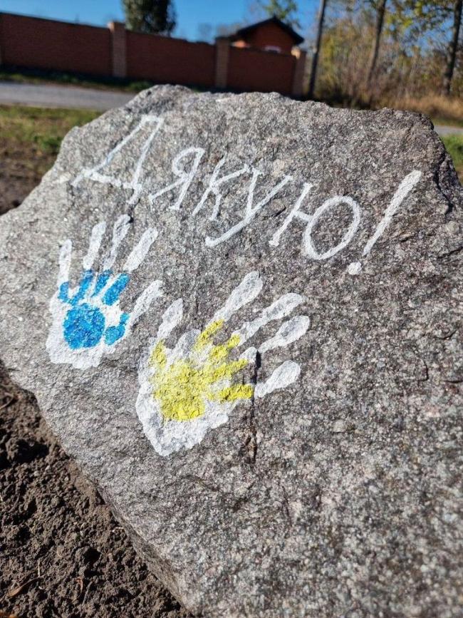 «Цей символ встановлений на знак вдячності та великої шани всім Захисникам та Захисницям України» — вигравіювано на гранітній плиті біля тризуба. А неподалік донька українського захисника написала на камінці «Дякую!» й наймолодші жителі громади залишили відбитки маленьких долоньок. Ми маємо пам'ятати якою важкою ціною дається нам Перемога та шанувати усіх Героїв та Героїнь, які захищають Україну.