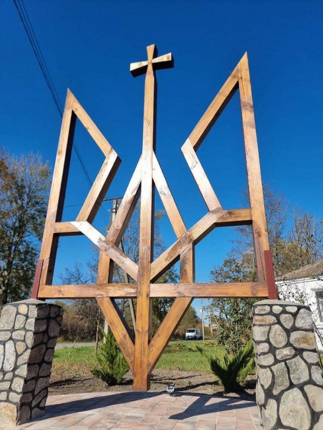 У центрі Сальника встановили гігантський дерев'яний тризуб