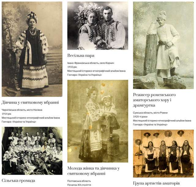 - Музей Івана Гончара запустив онлайн-виставку «Україна та українці» з фотографіями українців у традиційному вбранні минулих століть. Дивіться, які прекрасні ці світлини.