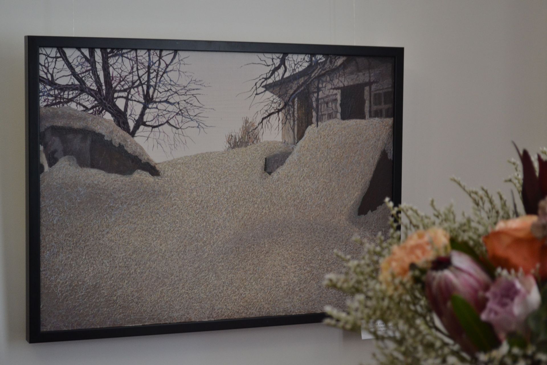 – Вони його ніколи не бачили, так роздивлялися. Я навіть дозволяв торкатися до картин, – сміється Іван Марчук, а тим часом архієрей Симеон і сам спробував торкнутися до снігу на картині.