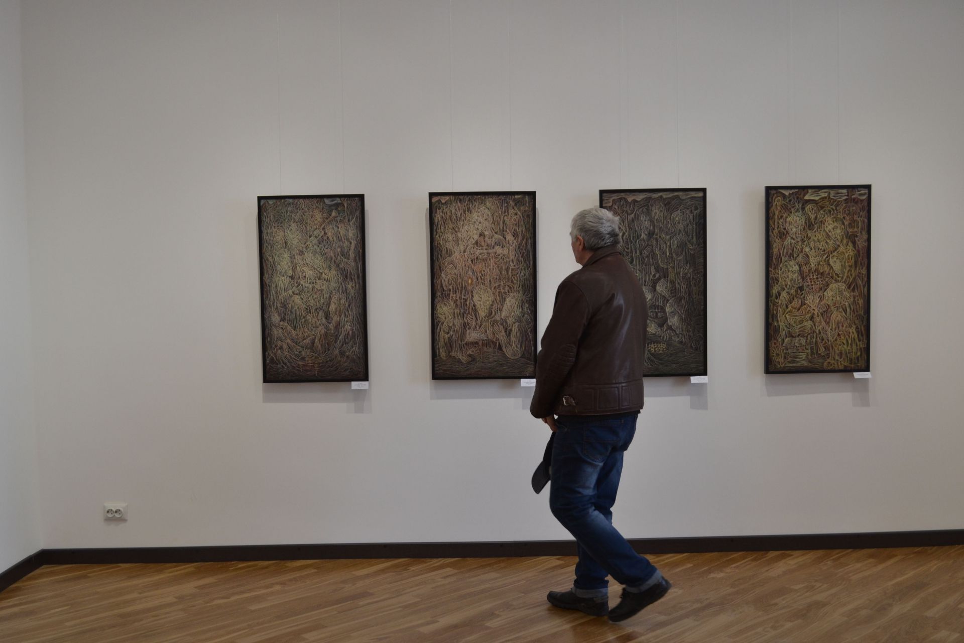 - Усього в музеї представлено півсотні робіт художника, які виконані у авторській техніці пльотанізм та графіці.