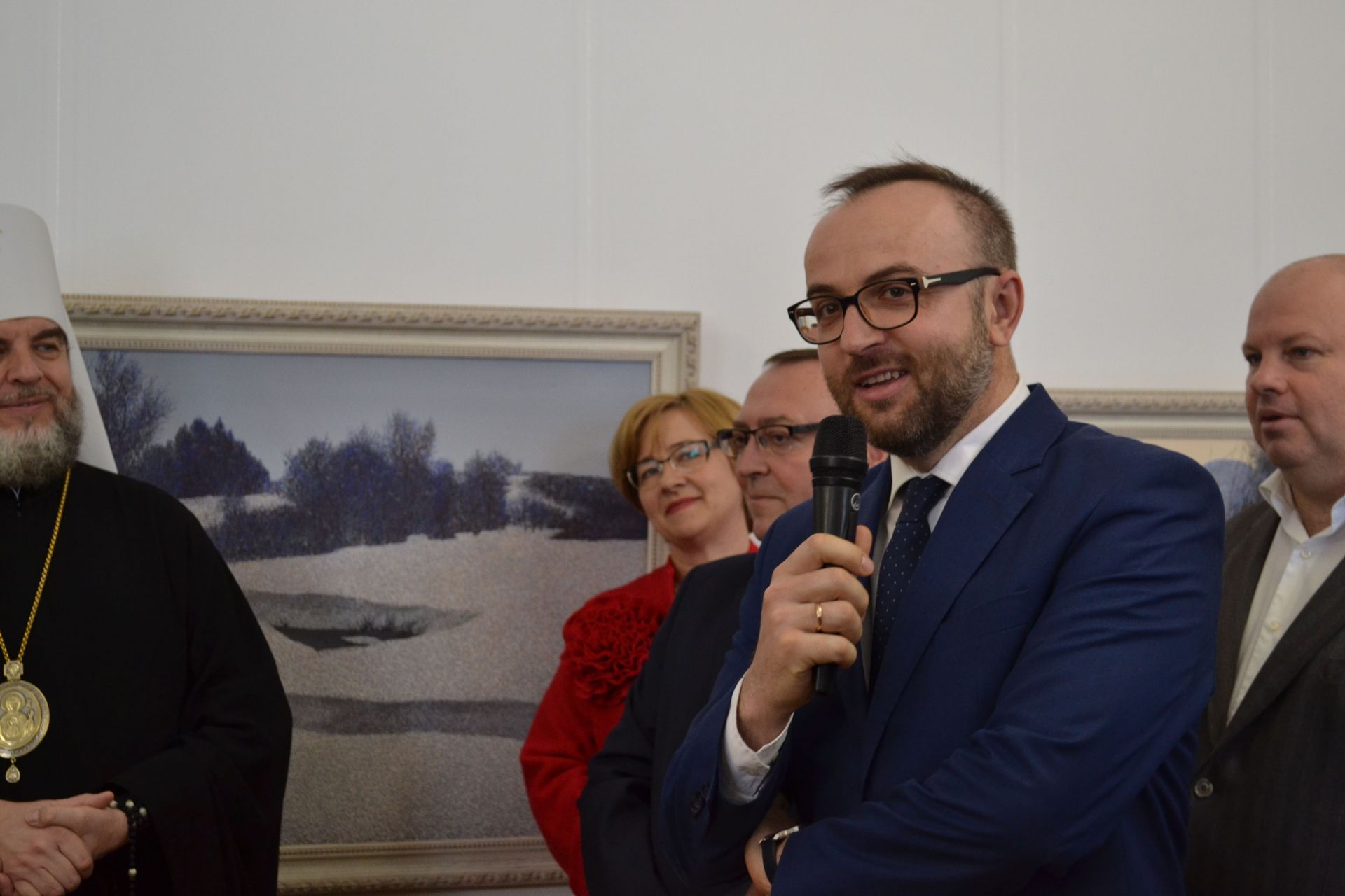 - На відкритті зібралося чимало бажаючих познайомитися із митцем та його творчістю. Серед них були: голова Вінницької ОДА Валерій Коровій, генеральні консули Михайло Куницький та Дамян Царціньскі, а також архієрей Симеон.