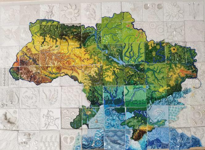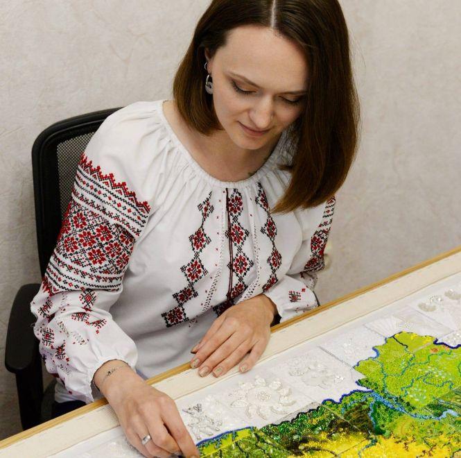 — Спеціально для кожної учасниці ми розробили індивідуальний інформаційний лист, в якому був розміщений фрагмент карти 10х10 см, там були збережені всі пропорції. Роздрукувавши його, дівчатам було легко перенести його на полотно і не боятися, що якісь річки чи кордони потім не зійдуться з іншими фрагментами як пазли. А також ми розробили спеціальну кольорову гаму, аби всі шматочки відповідали тону, — пояснила співорганізаторка проєкту.