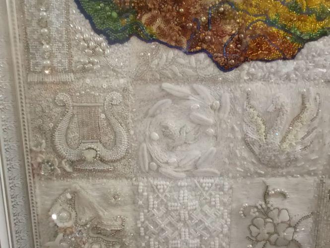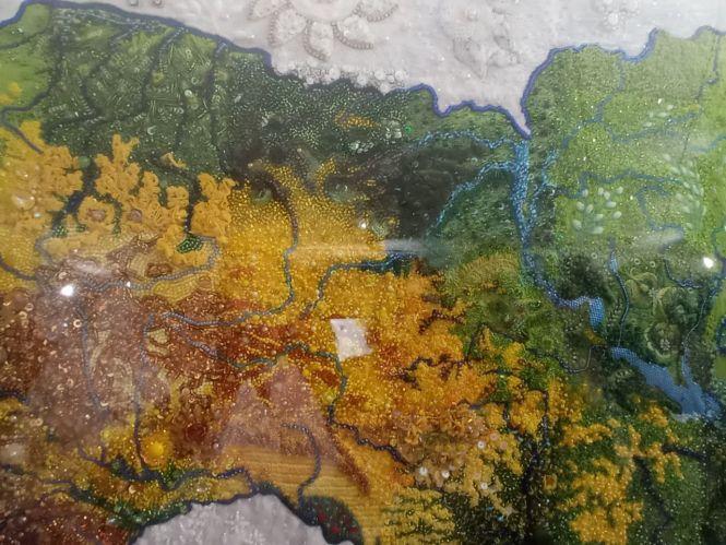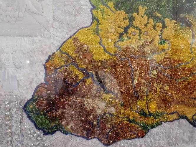 І справді, мати різноманітні матеріали під руками було важливо для кожної учасниці. Причиною тому стала основна задумка організаторки — зробити карту об’ємною. Відтак вишивали її не лише нитками, а й бісером, паєтками, стрічками та камінням Сваровські.
