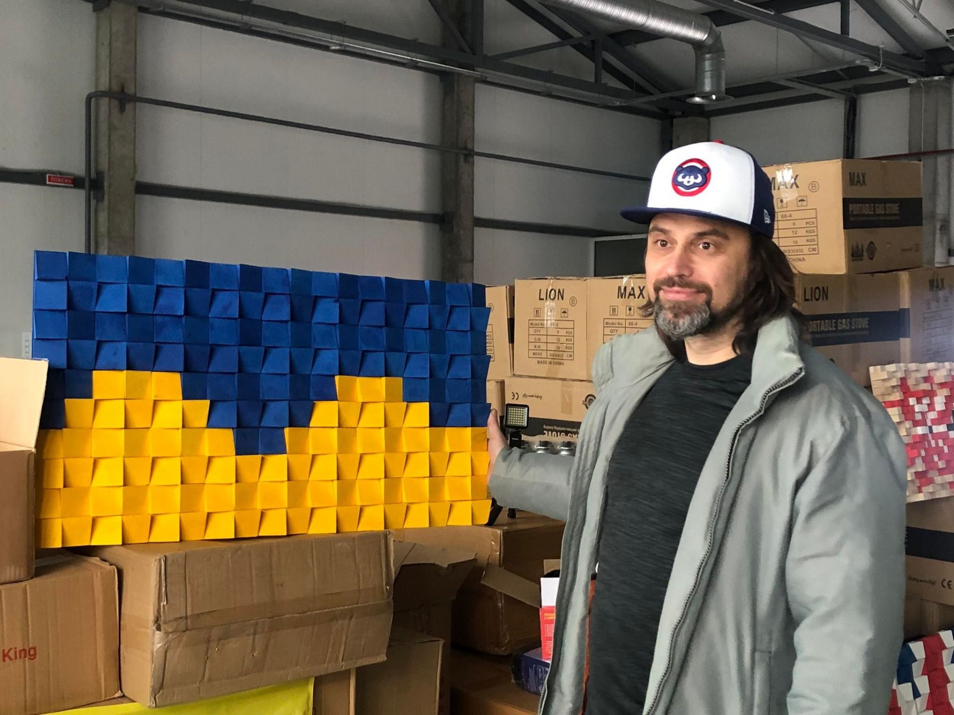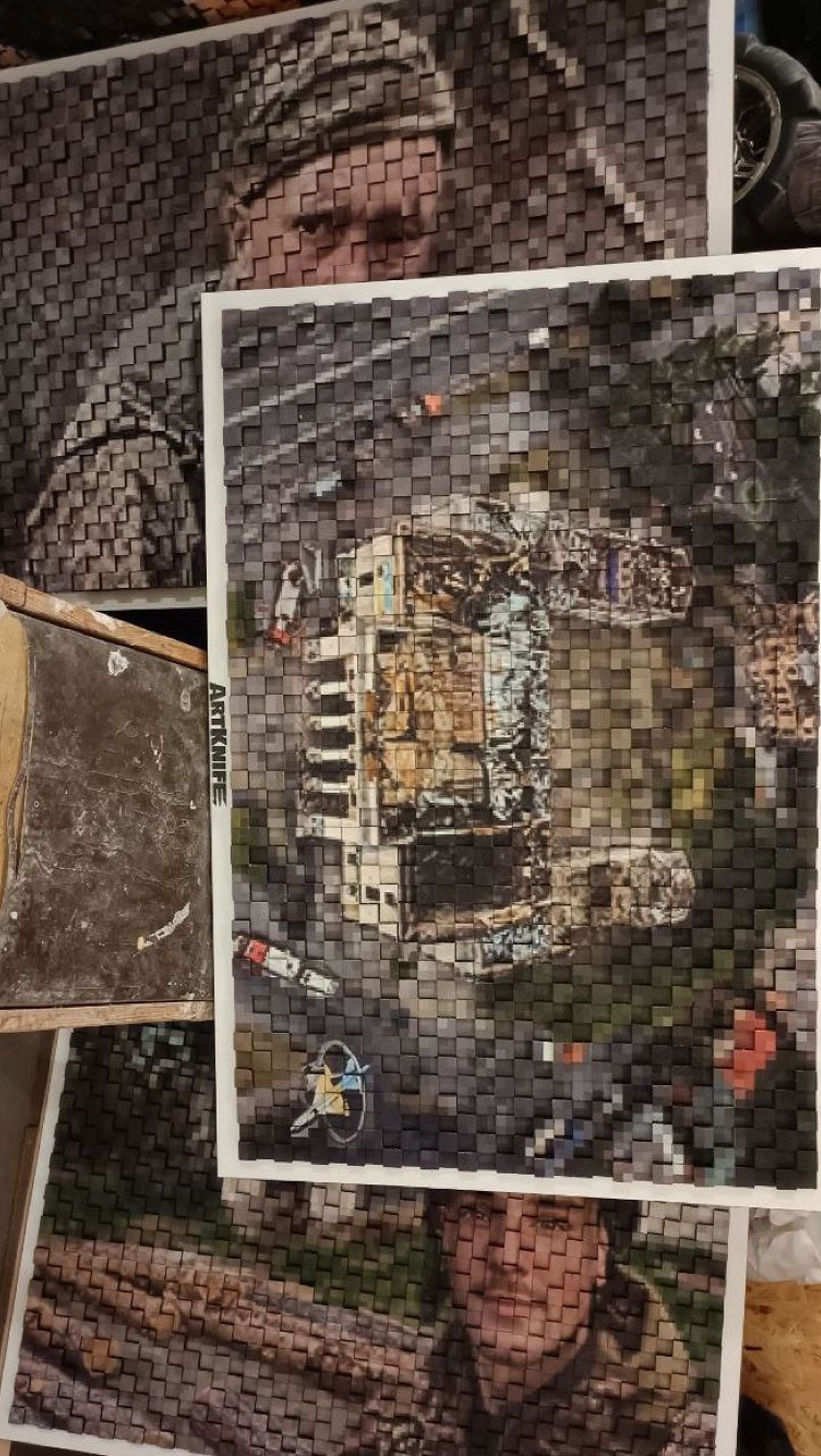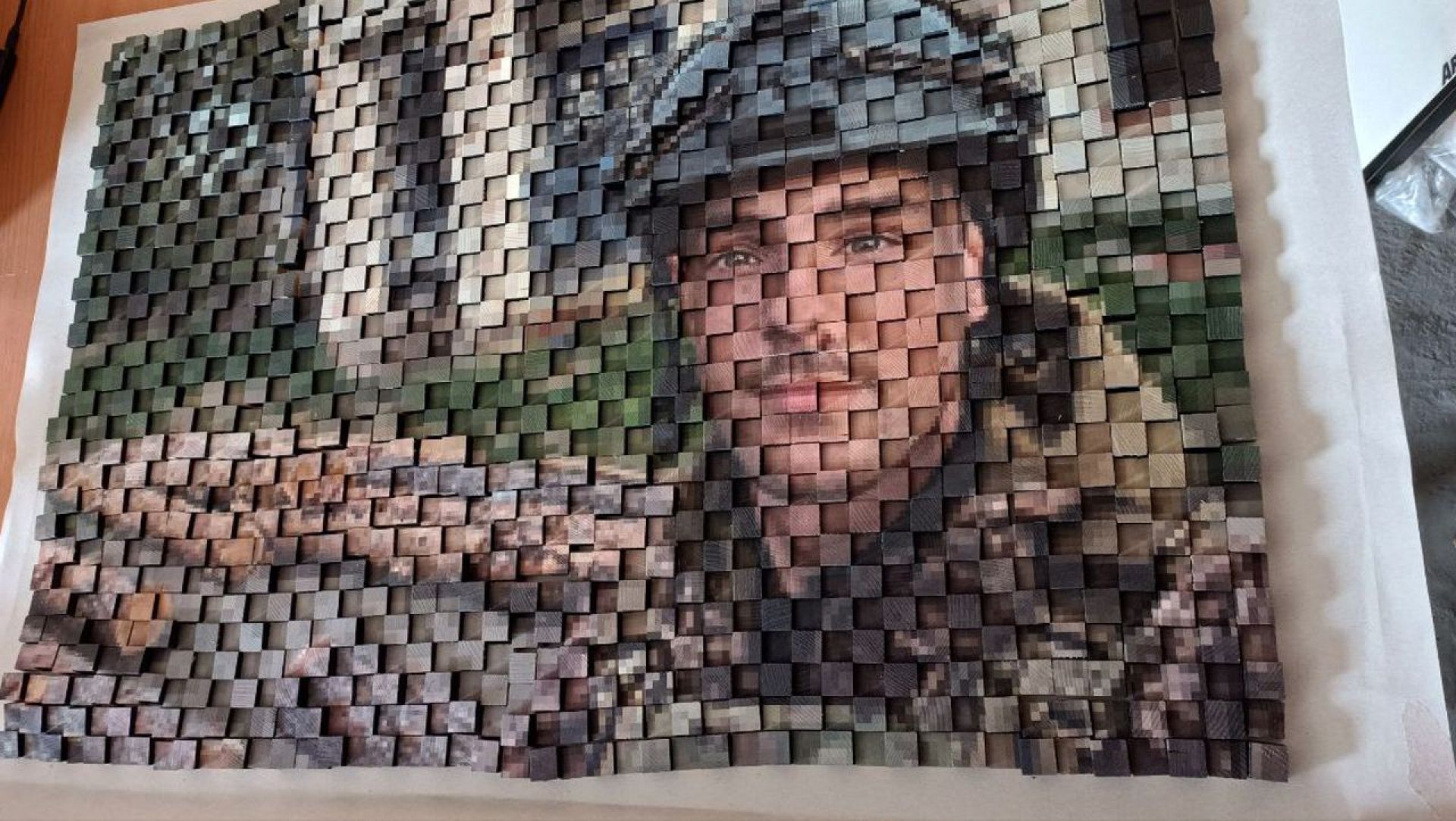 Незвичні картини Володимир Лапшов створює із дерев’яних кубиків. Як «пікселі» — символ форми українських військових. Як «пазли» єдиного цілого: коли маємо один біль і одну головну мету на всіх.