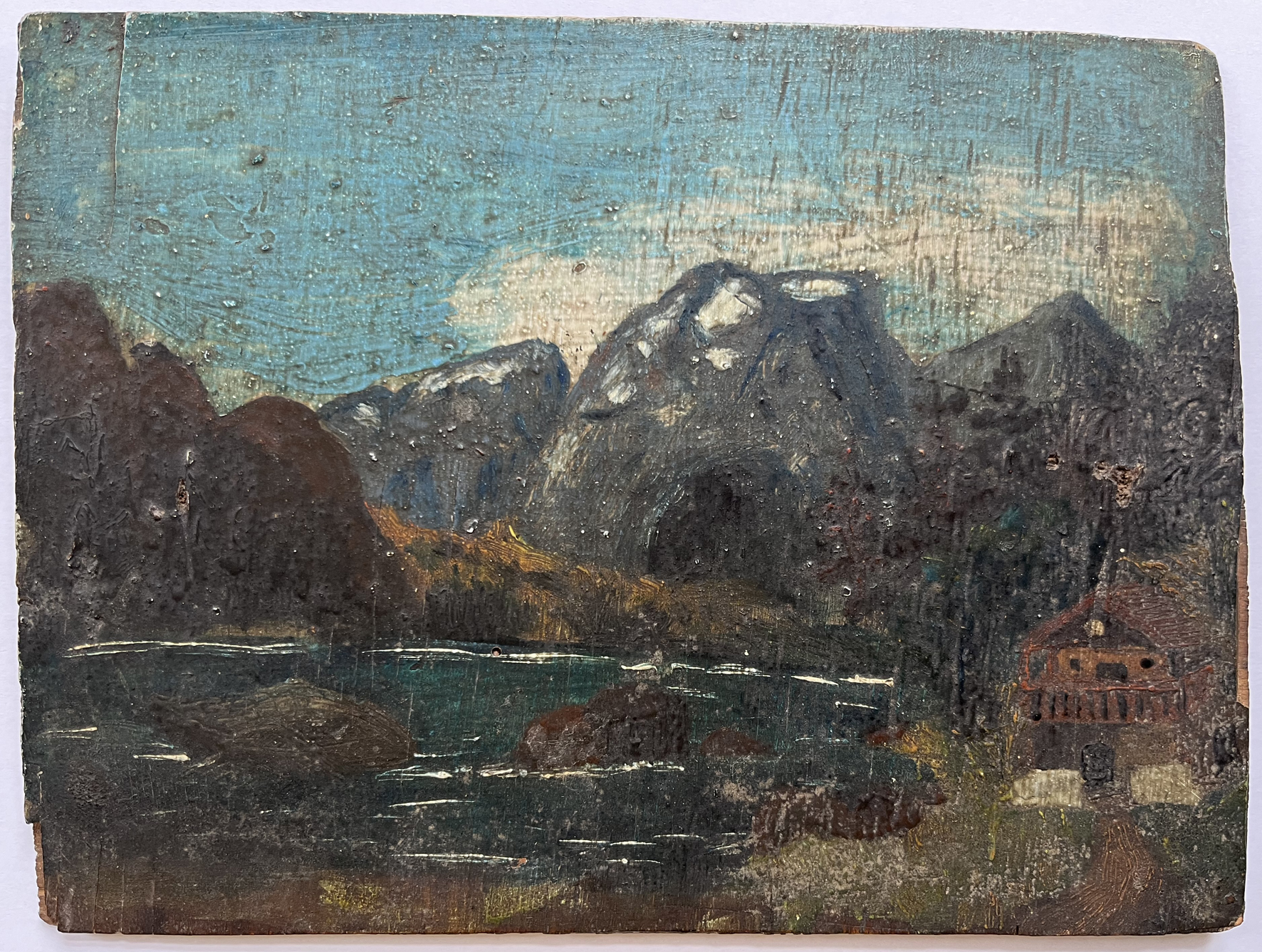 Гірський пейзаж. З фондів Музею Вінниці. Ймовірно, це єдина збережена дитяча робота Олекси Новаківського