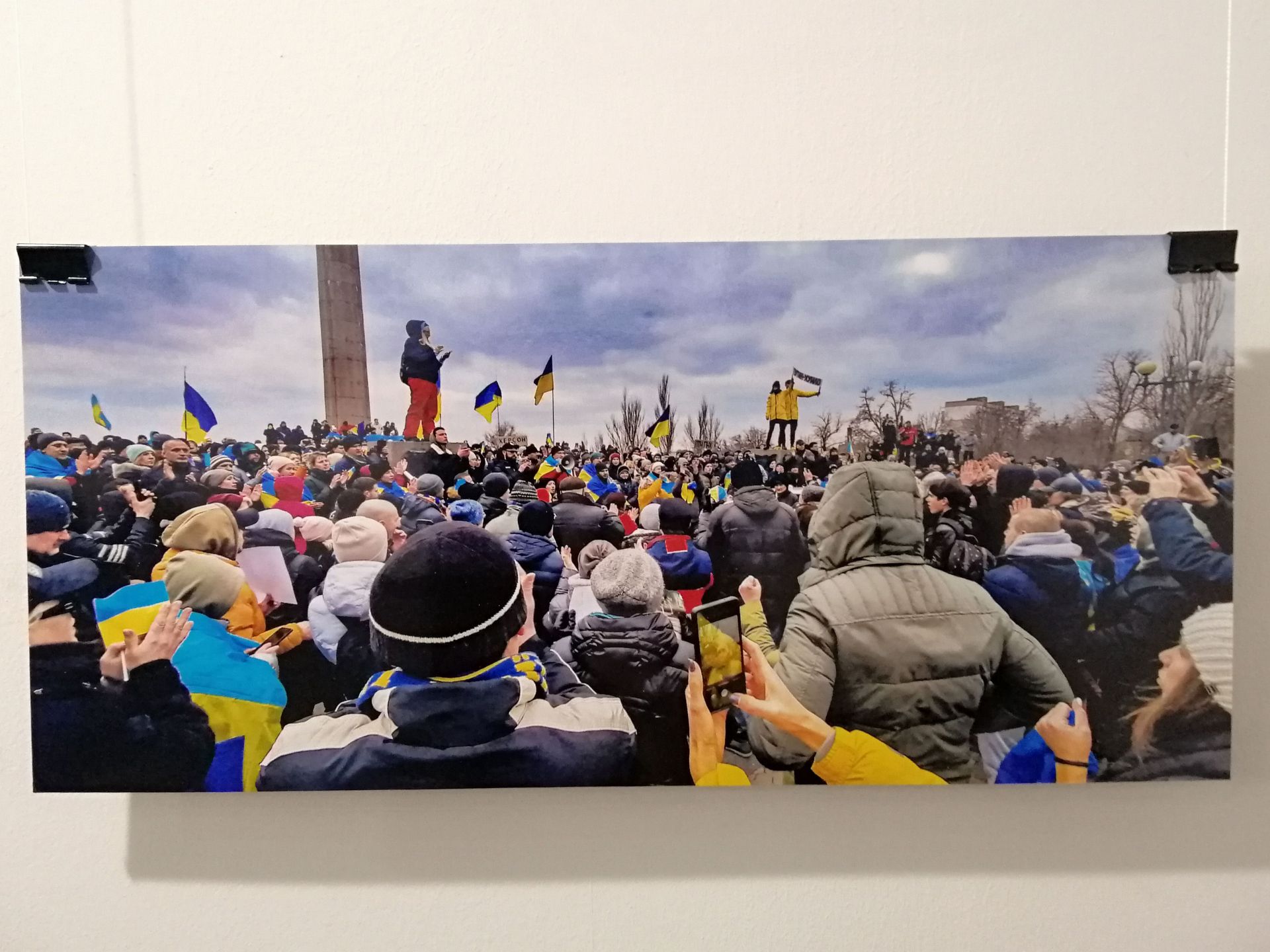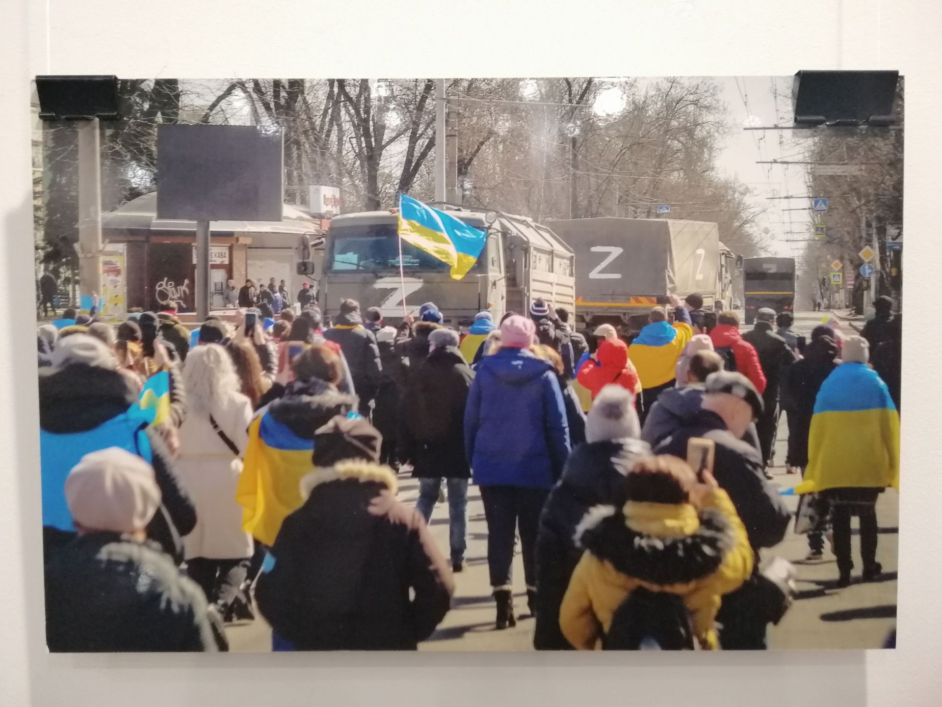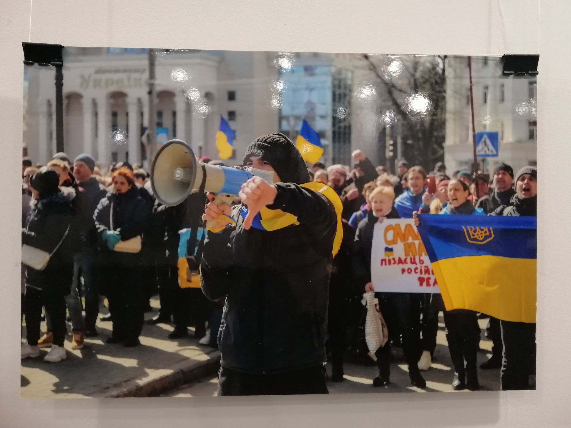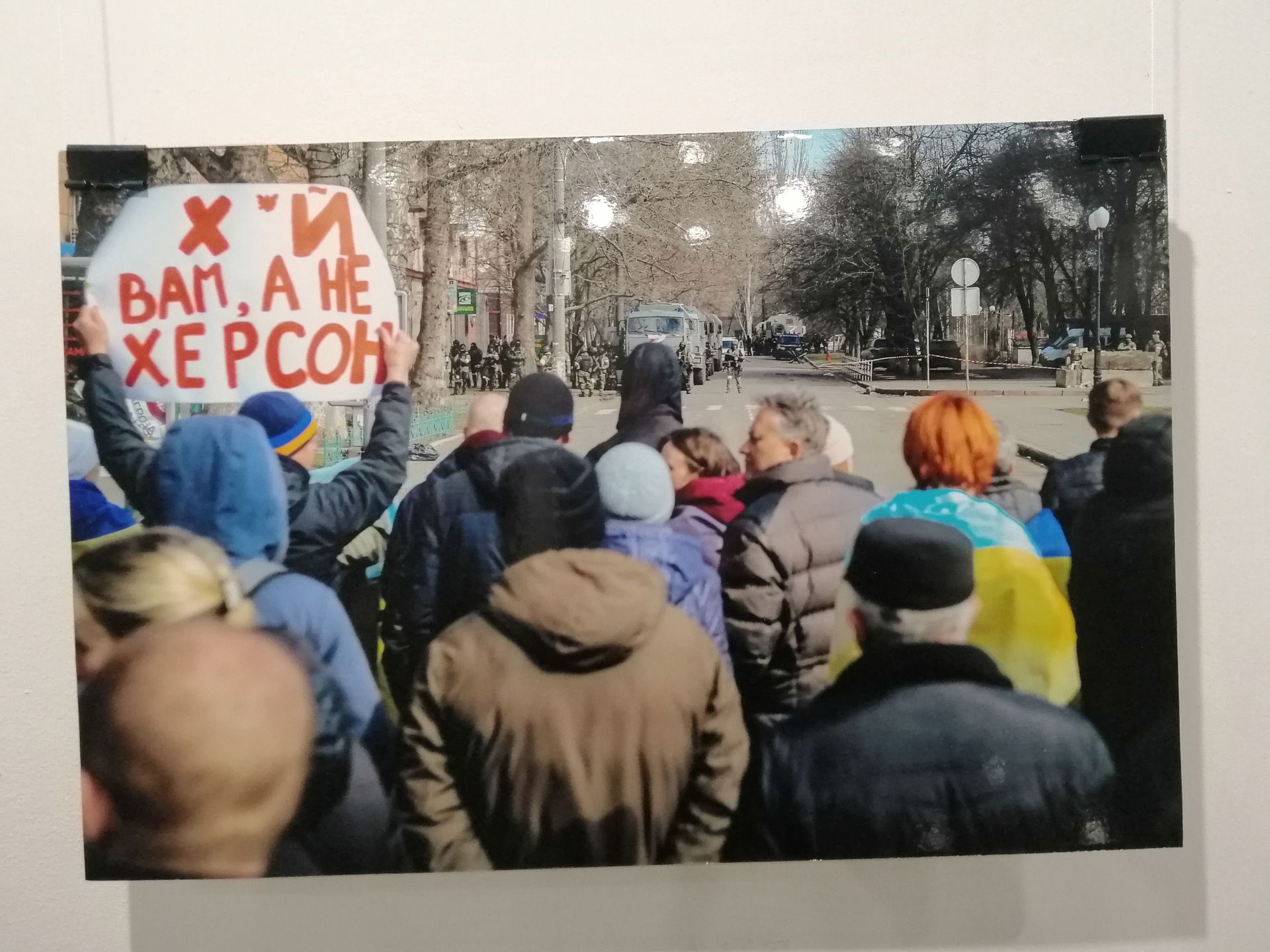 У своїй фотовиставці Олександр Корняков представив 50 світлин, які у хронологічному порядку показують, як попри всі загрози із початку березня херсонці виходили на багатотисячні мітинги, кадри з яких вразили весь світ. Кожна світлина — не просто вдала, яскрава картинка, а історії людей, символ гордості, незламності та водночас — жахіть, які довелося пережити херсонцям.