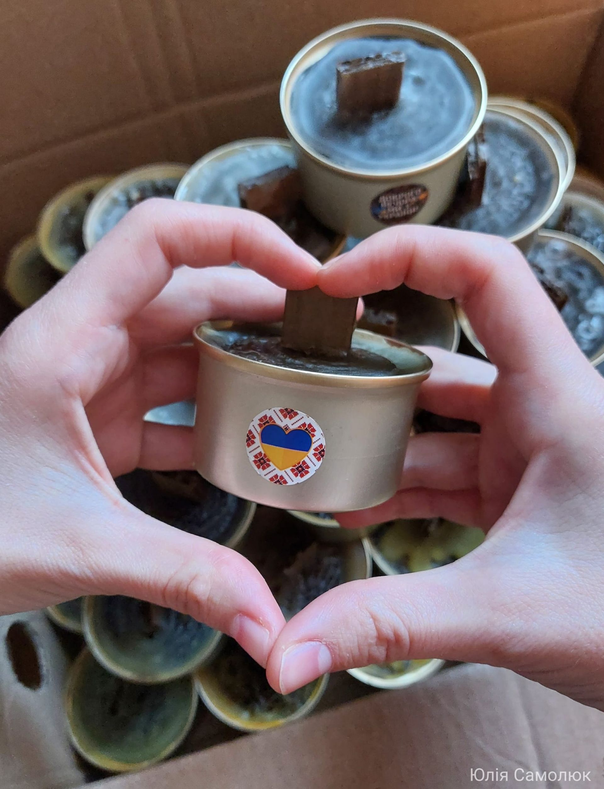 — Замовила 51 кілограм пальмового воску, це повністю екологічний продукт, — каже Юлія. — У найближчих планах виготовити стільки свічок, скільки вийде з цього матеріалу. Я буду робити окопні свічки доки буде з чого, і це буде необхідно нашим військовим.