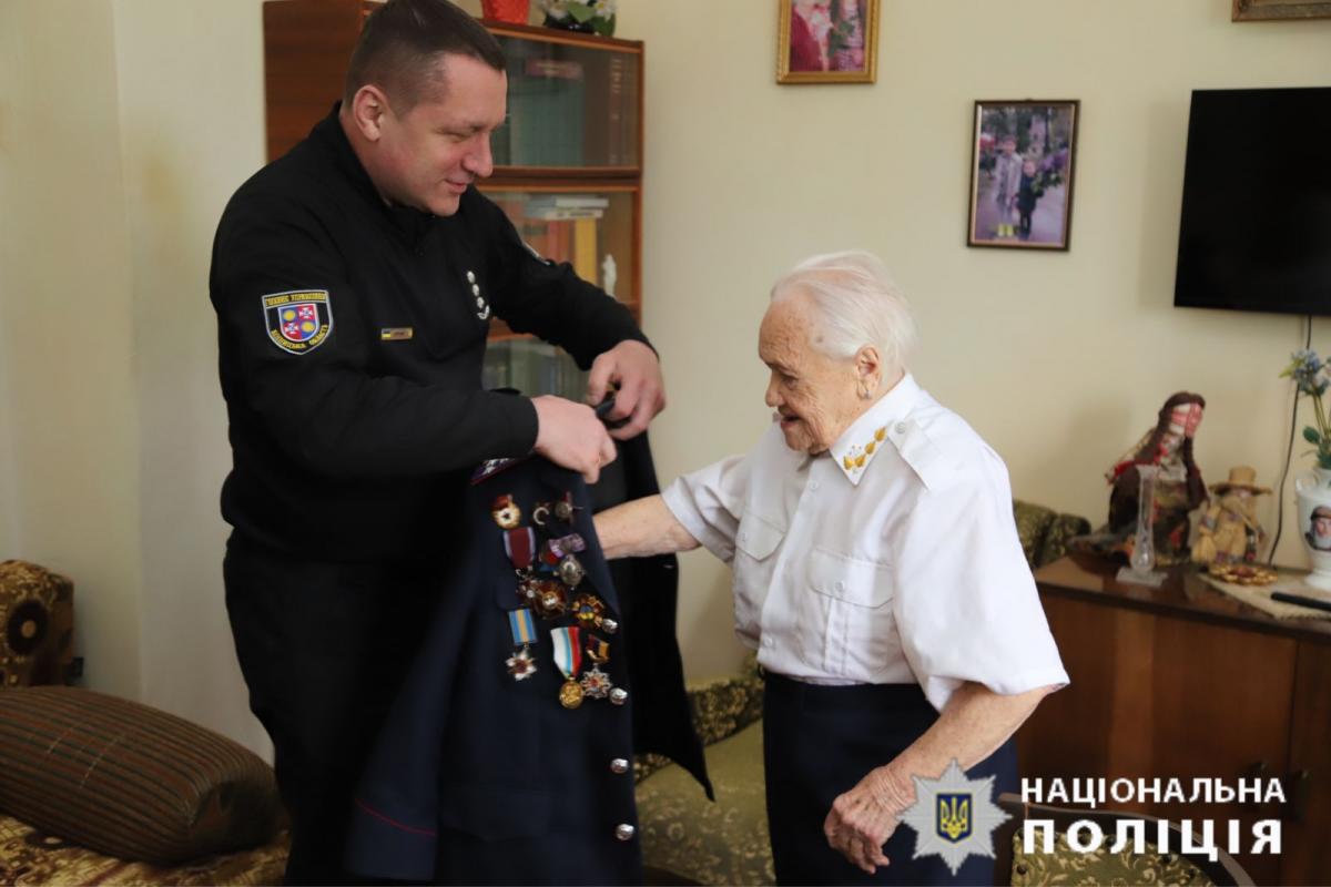 Поліцейські Вінниччини відвідали ветерана Другої світової війни, 99-річну Ольгу Іванівну Твердохлєбову, повідомляють в обласному главку.