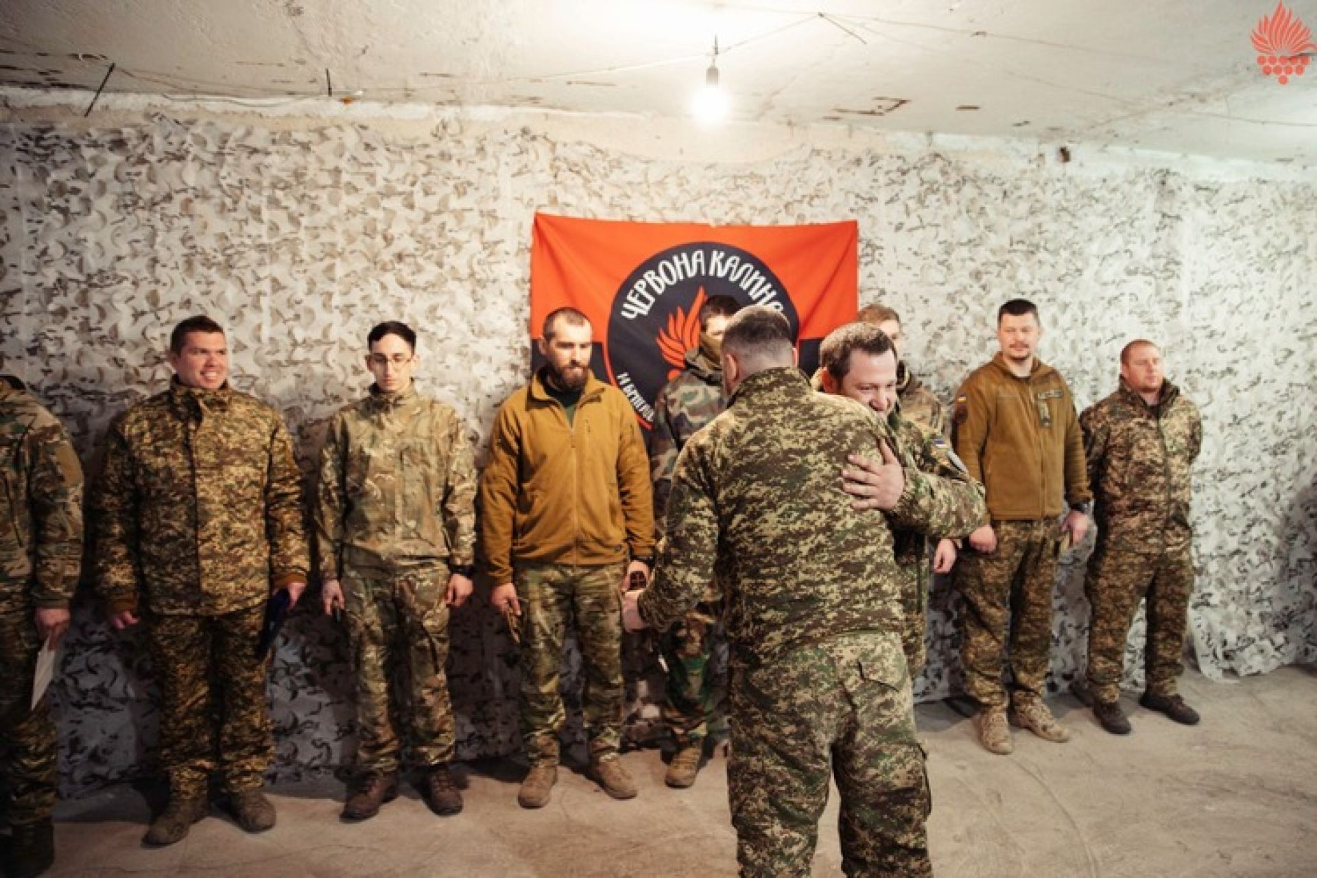 - Міністр внутрішніх справ Ігор Клименко вручив двом військовослужбовцям бригади «Червона Калина» відзнаки МВС «Вогнепальна зброя». Командир бригади Олег Мироненко подякував бійцям за оборону та вручив гвардійцям бойові ножі, сертифікати на відпочинок, державні відзнаки.