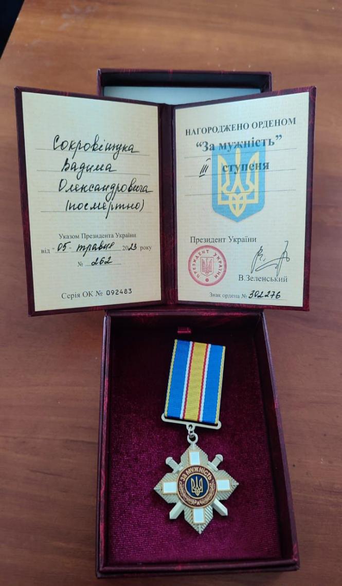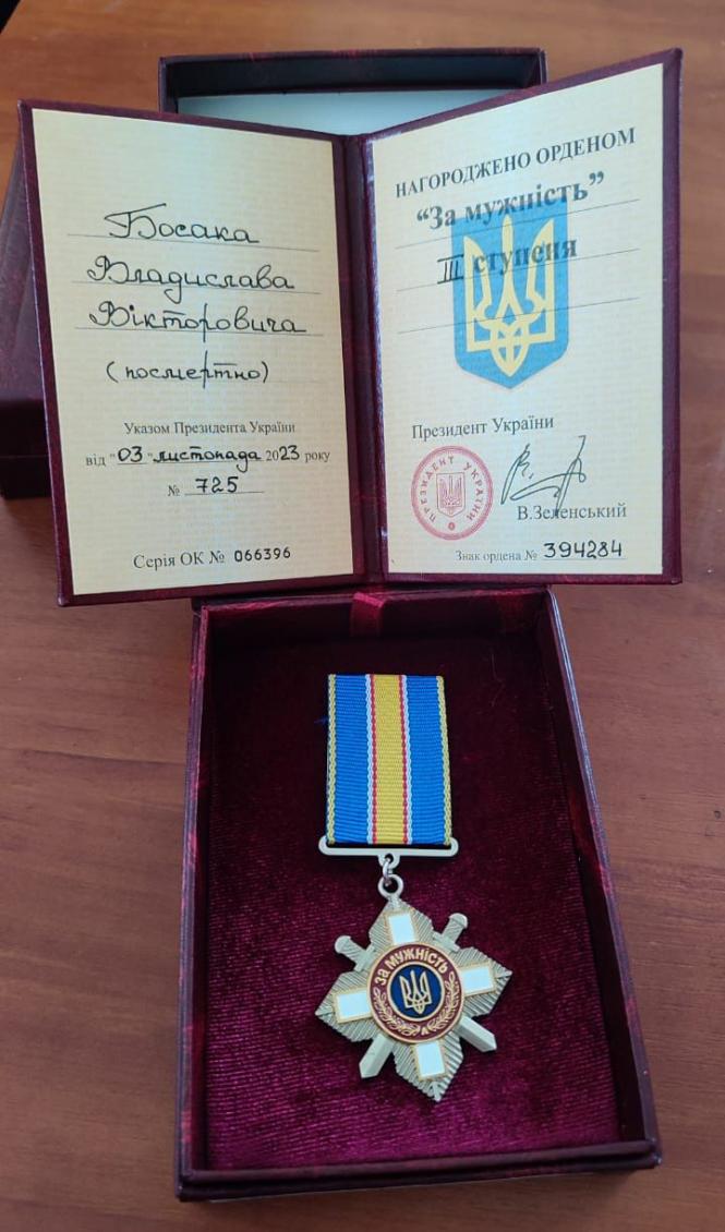 За особисту мужність, виявлену у захисті державного суверенітету та територіальної цілісності України, самовіддане виконання військового обов’язку, орденом «За мужність» третього ступеня нагородили солдата Вадима Сокровіщука та солдата Владислава Босака. Ордени передали батькам Героїв.