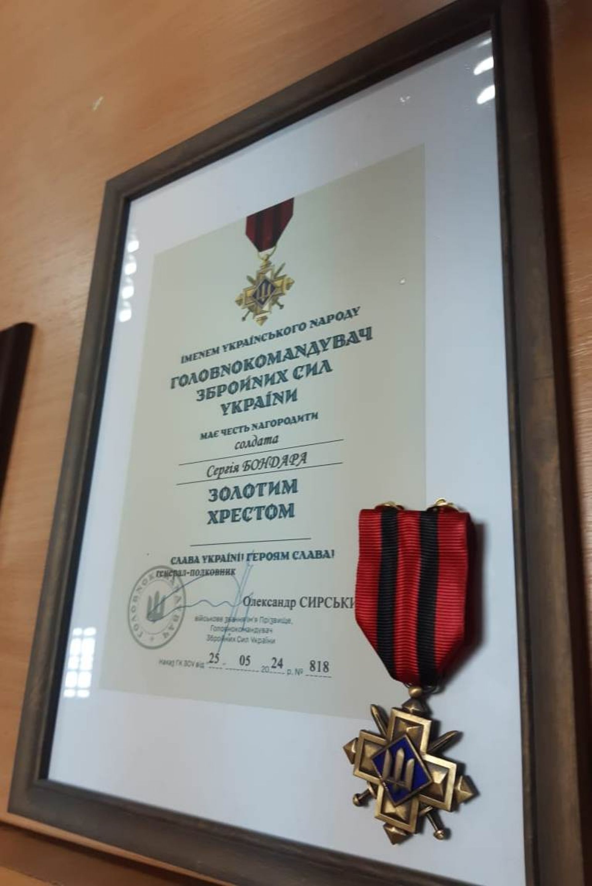 Максим Гребельський з Літина отримав медаль «Захиснику України» від Головкома ЗСУ