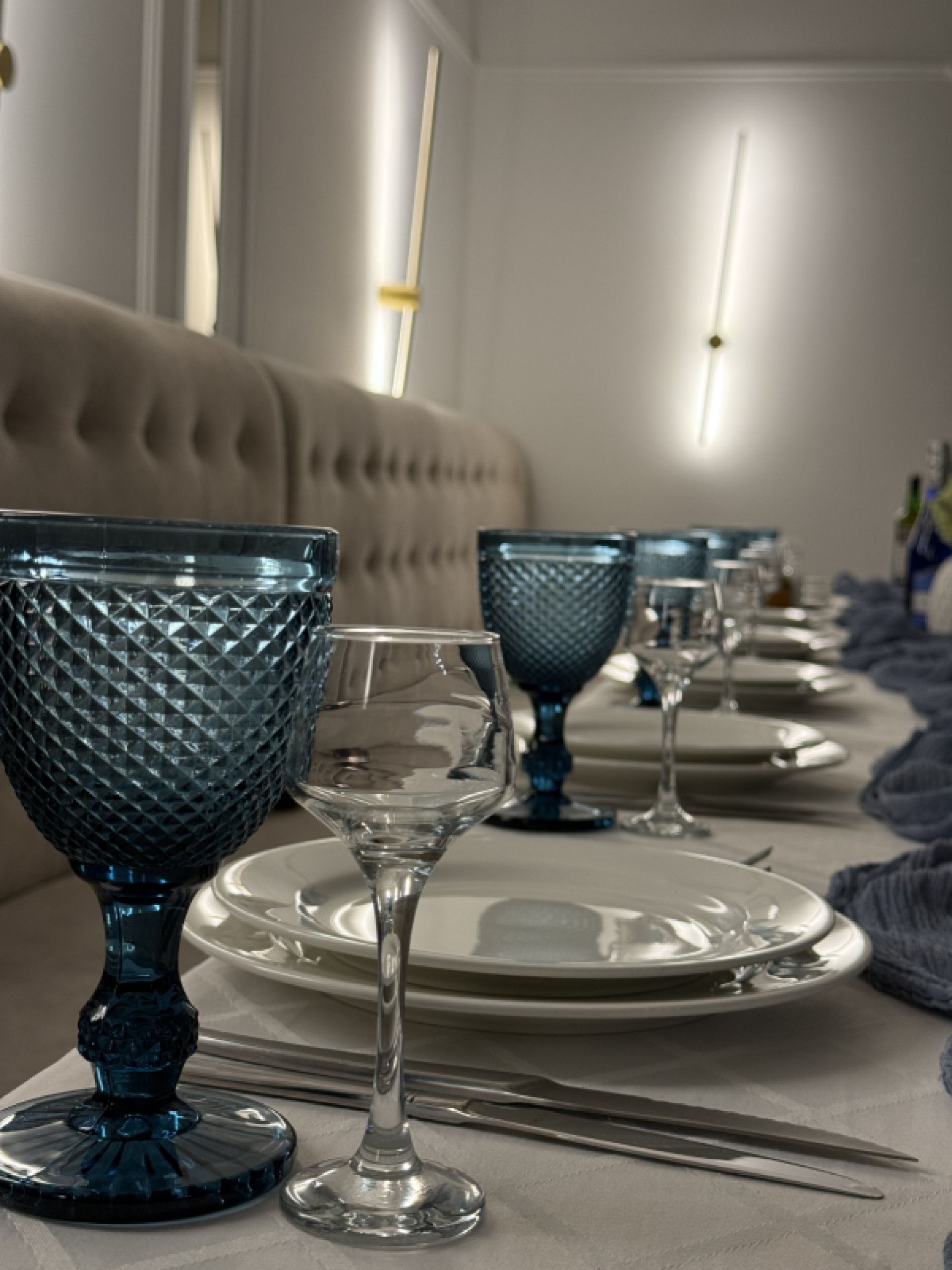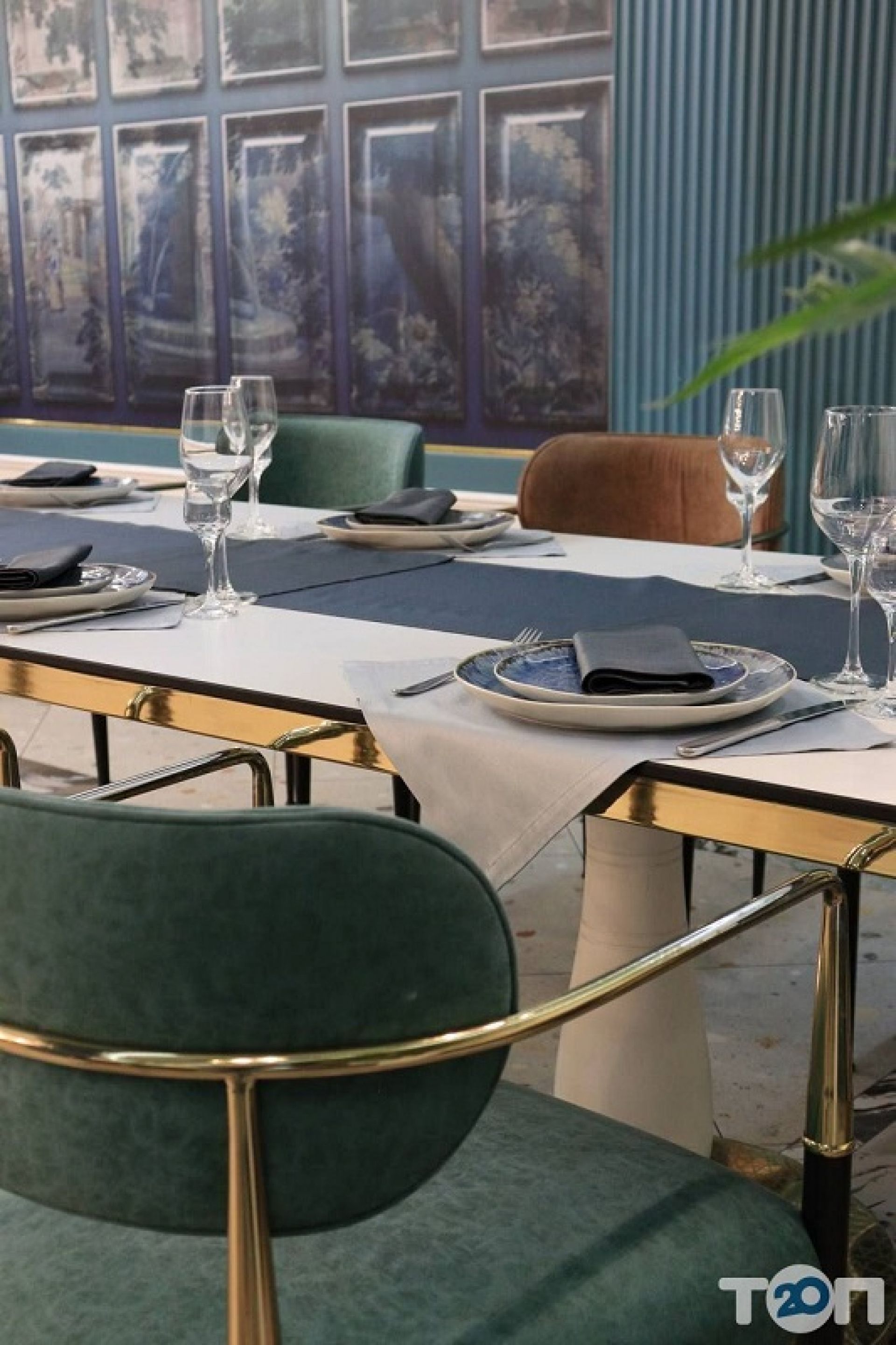 Також є один банкетний зал, виконаний у класичному стилі, але з яскравими акцентами у вигляді аквамаринових стін.