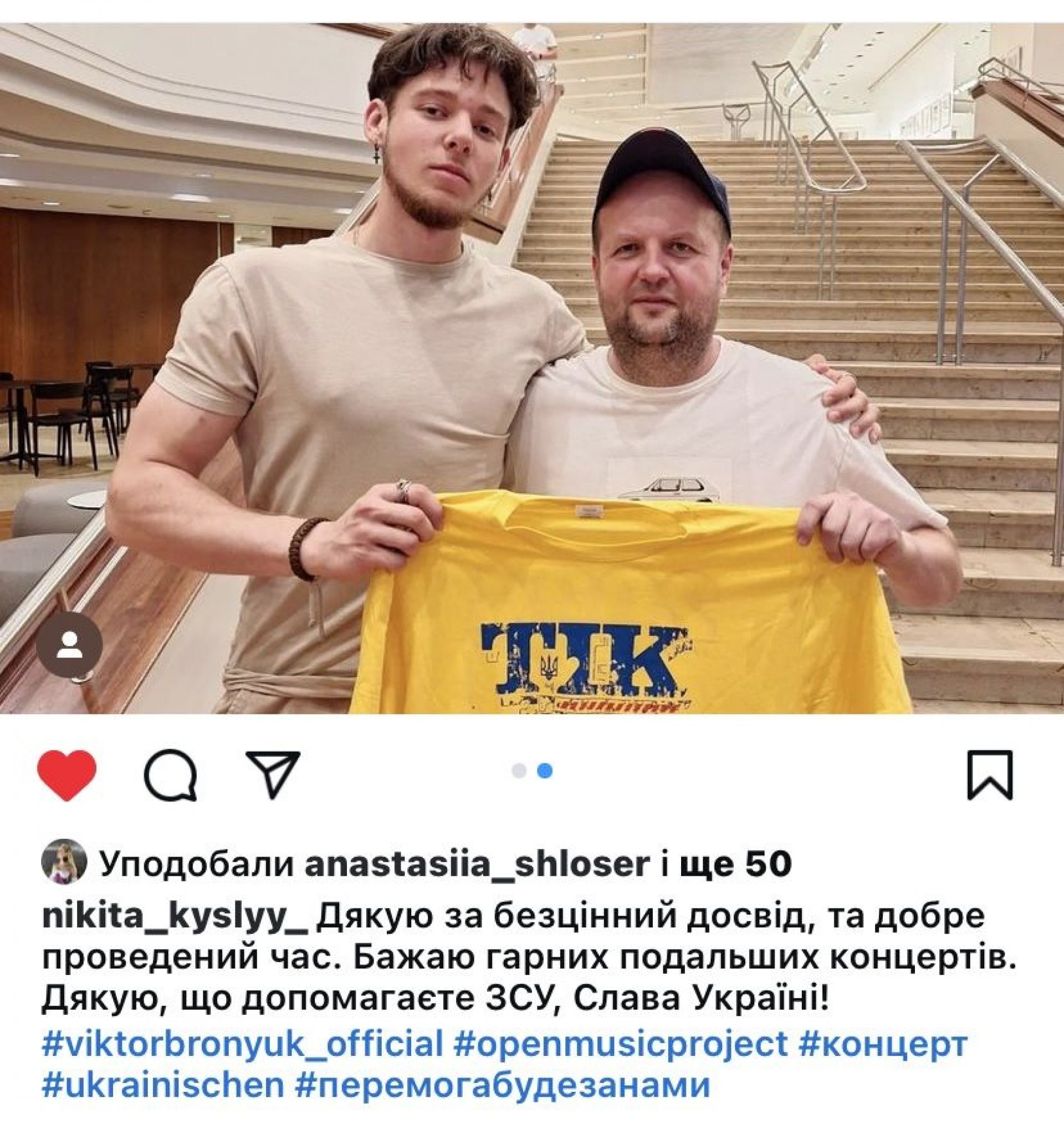 — Як і попередні, цей концерт пройшов у дуже душевній атмосфері, а також мав свою окрему історію. За кілька днів до початку туру, коли ще були в Україні, мені у Instagram надіслали відео, як молодий хлопець у Фрідріхсгафені співає «Запах війни». Коли публікував ту сториз у Instagram, запросив козака заспівати разом під час нашого концерту. Приїхавши у Фрідріхсгафен, ми вже познайомилися особисто. Хлопця звати Микита Гайворонський і я щасливий, що здійснив його мрію й виконав свою обіцянку: на концерті «Запах війни» ми заспівали разом, — говорить Віктор Бронюк.
