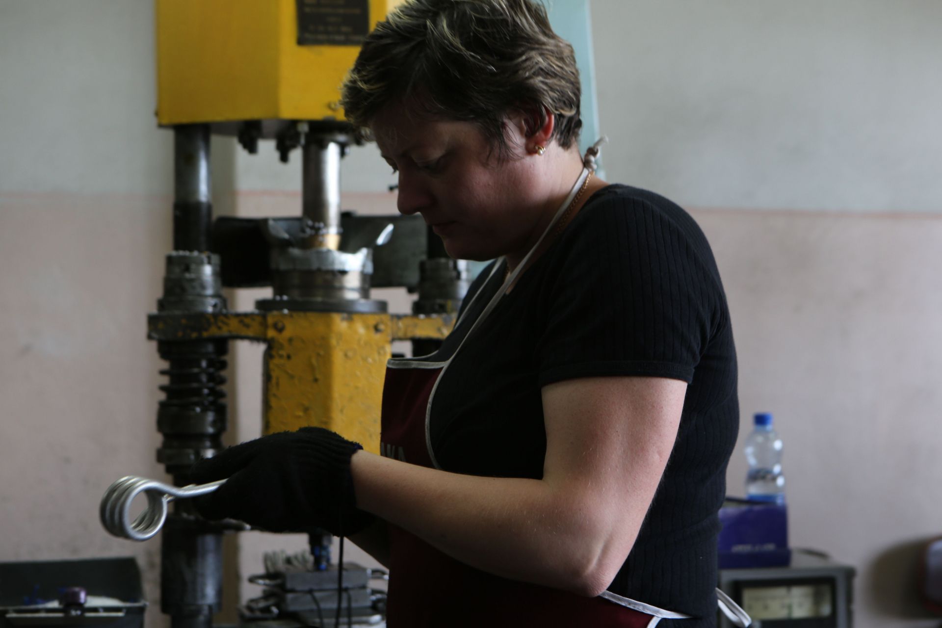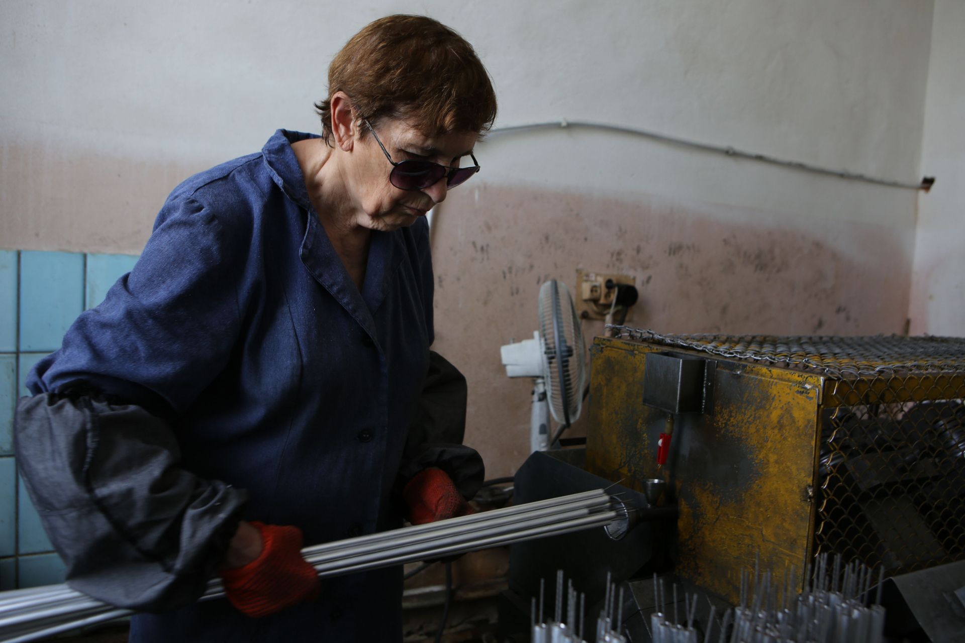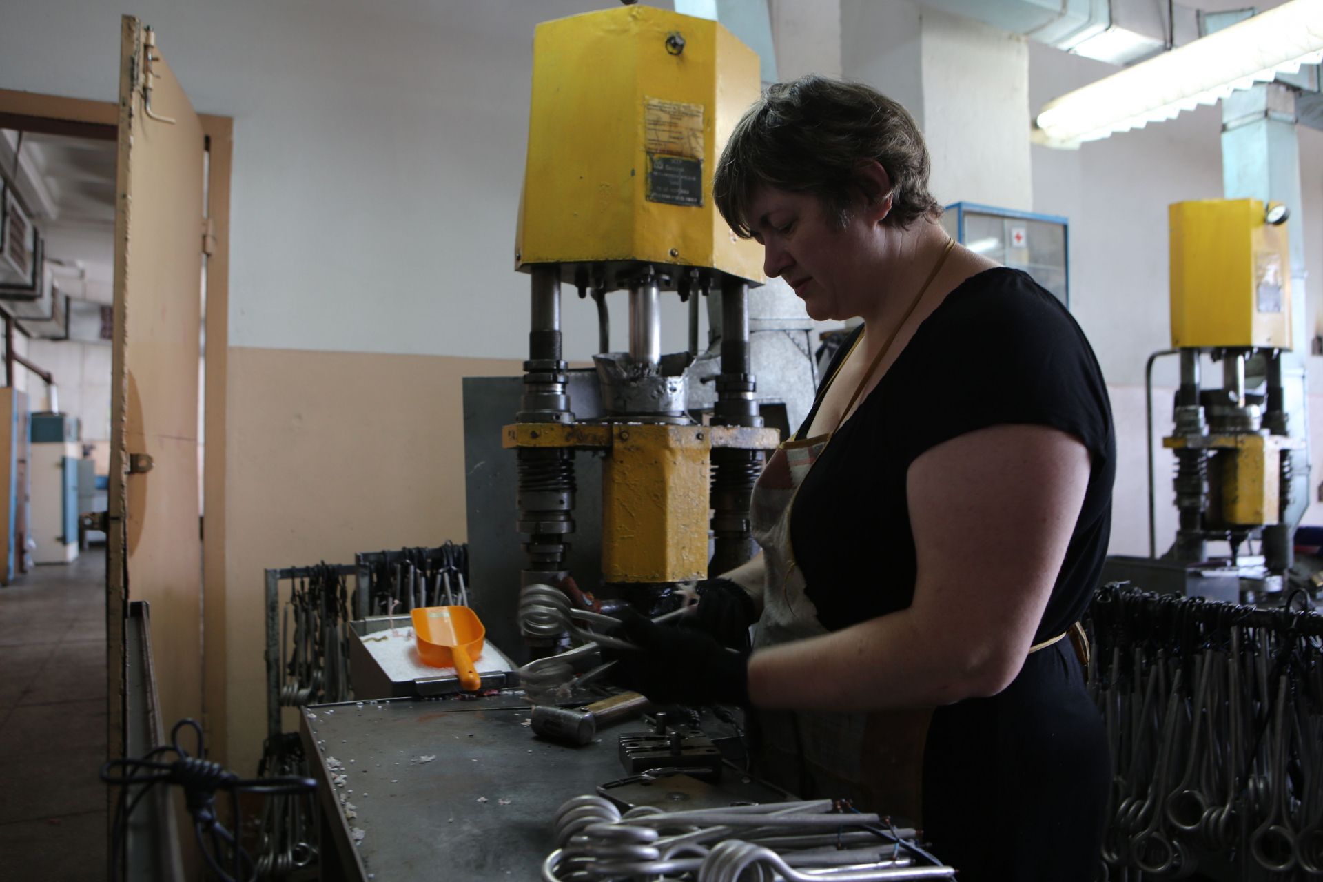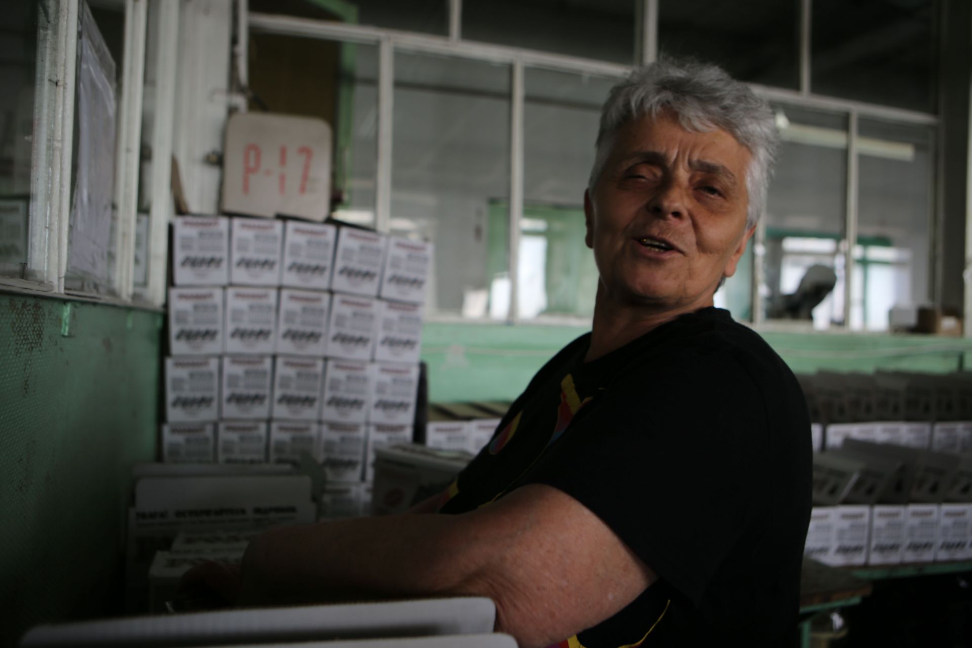 Неподалік від місця, де ми щойно говорили з Віктором працює Валентина. Вона пакувальниця: «Ой, ні-ні, розповідати нічого не хочу. Бачите, ми наче скажені зараз. Роботи багато», – пояснює жінка і береться поміщати черговий насос у коробку.