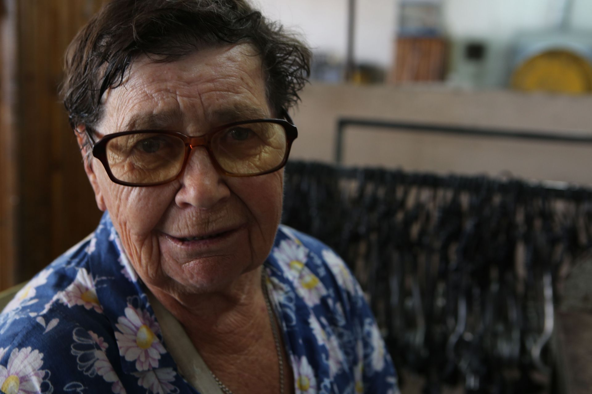 Недалеко від Валерія, за аналогічним верстатом, сидить Віра Миколаївна. Жінка дивиться у мій бік, але майже не бачить мене. У неї від народження всього 10% зору.