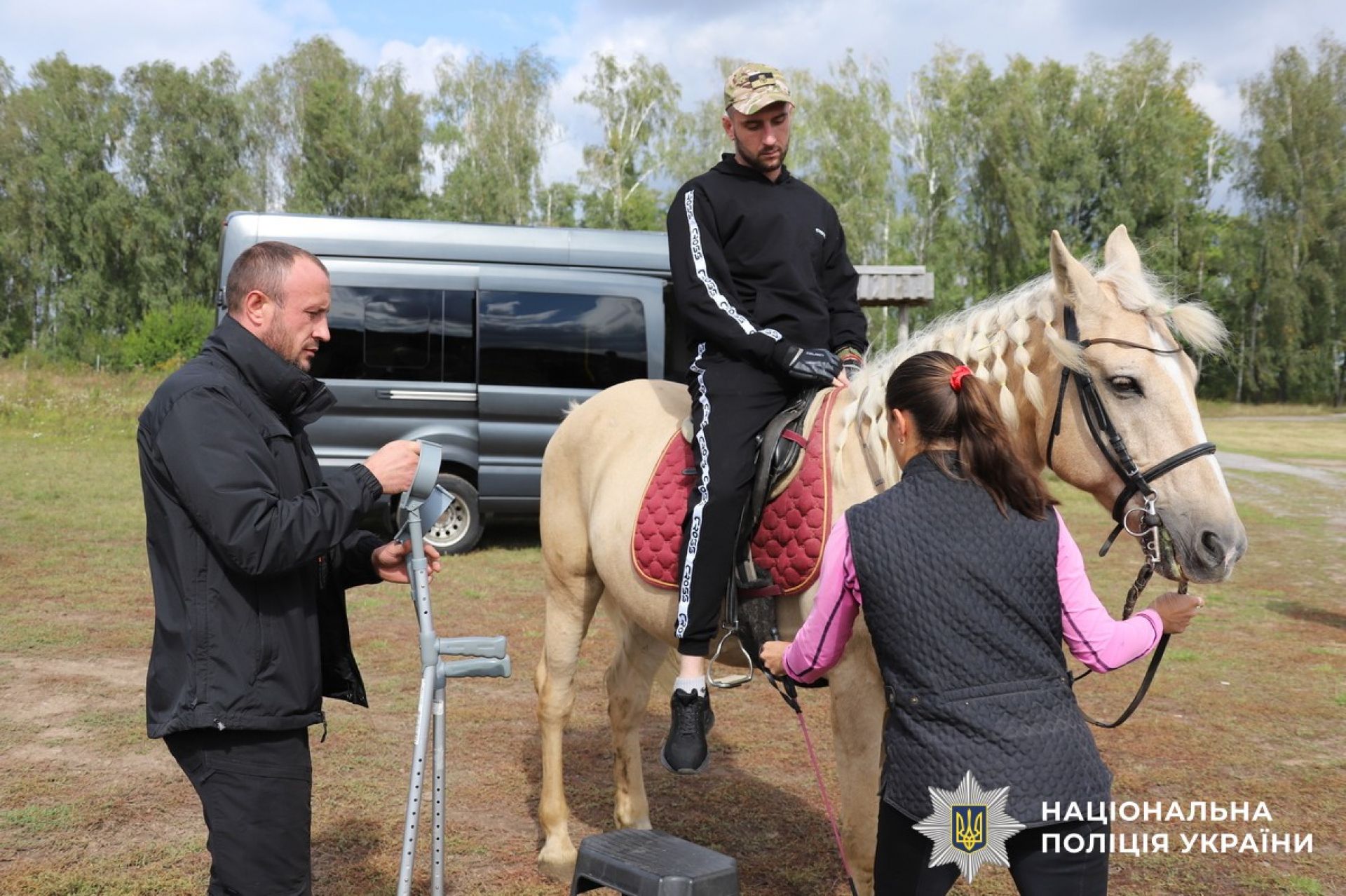 У Вінниці психологи поліції організували сеанс іпотерапії для поранених військових та поліцейських зі стрілецького батальйону. Бійці мали змогу на кілька годин забути про лікарняні палати та поспілкуватися з кіньми.