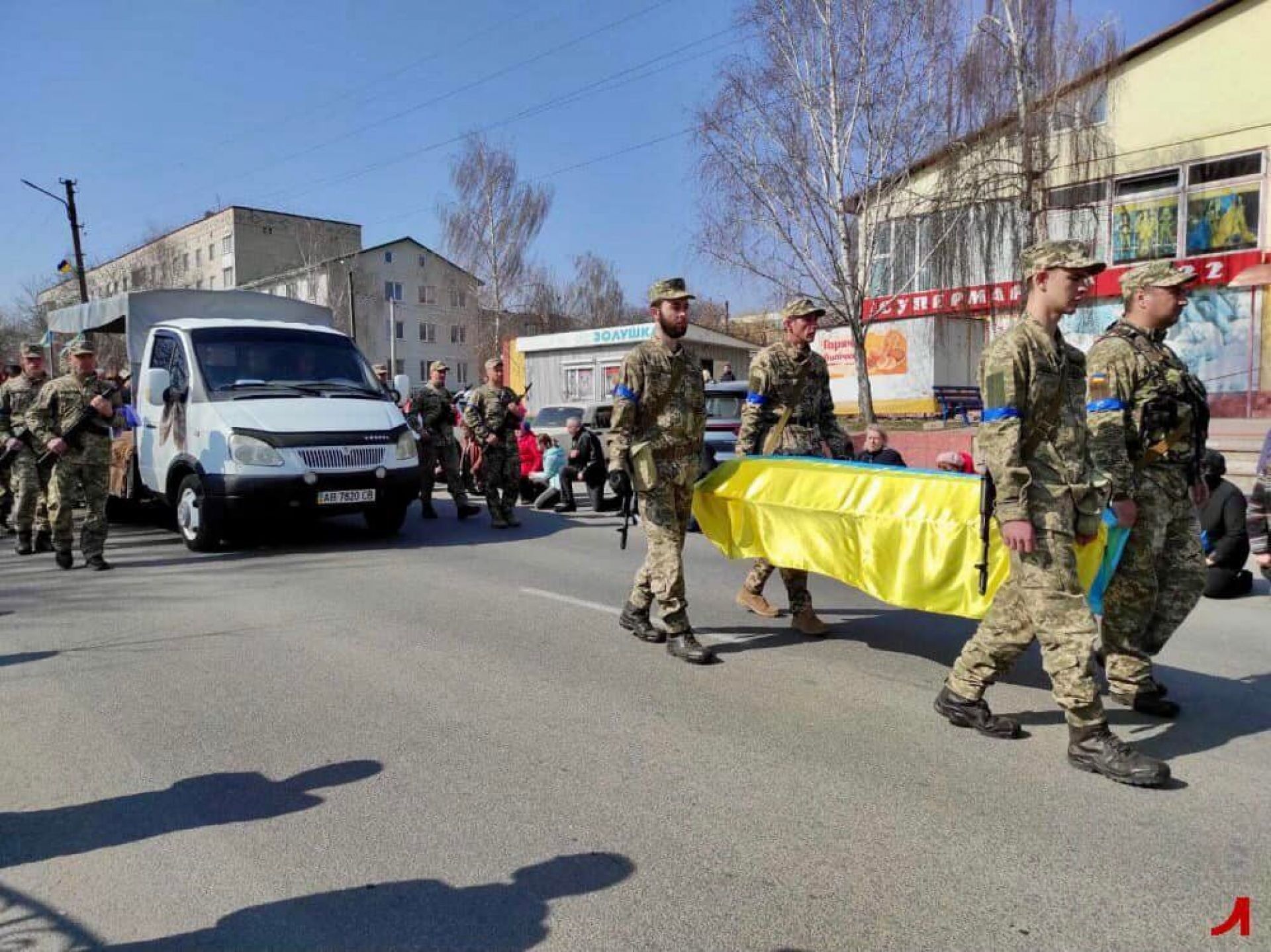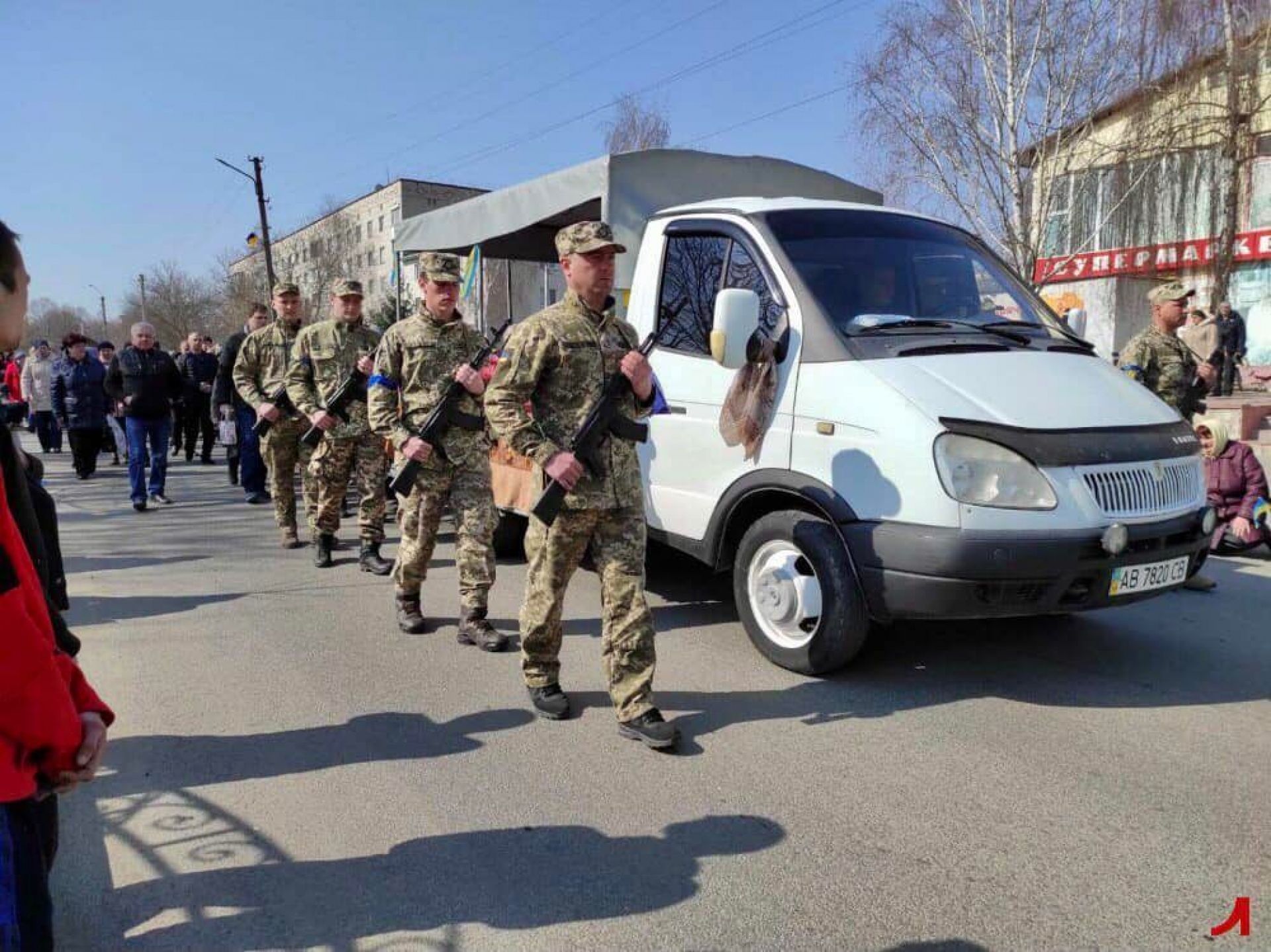 — Схиливши голови та ставши на коліна жителі громади засвідчили повагу мужньому воїну, — передає місцеве видання ladyzhyn.news. — Живий коридор утворився від міської лікарні вздовж вулиці Будівельників до головної площі міста, де об 11.00 почався траурний мітинг, панахида та церемонія прощання з полеглим героєм.
