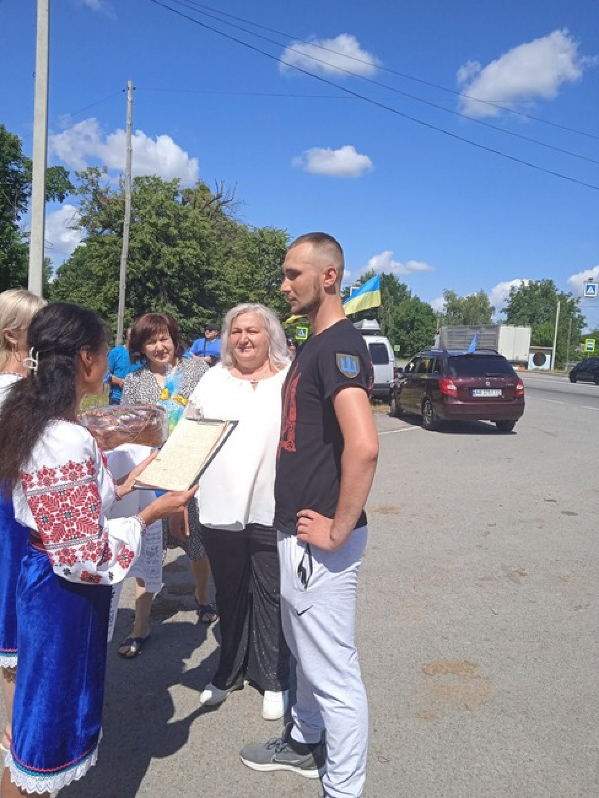 Зустріли в громаді Олександра хлібом святим, бо він захищав кожен колосок золотої пшениці; сіллю, бо знаємо через які тортури йому довелося пройти; вишитим рушником, який як мамина молитва є оберегом і захистом.