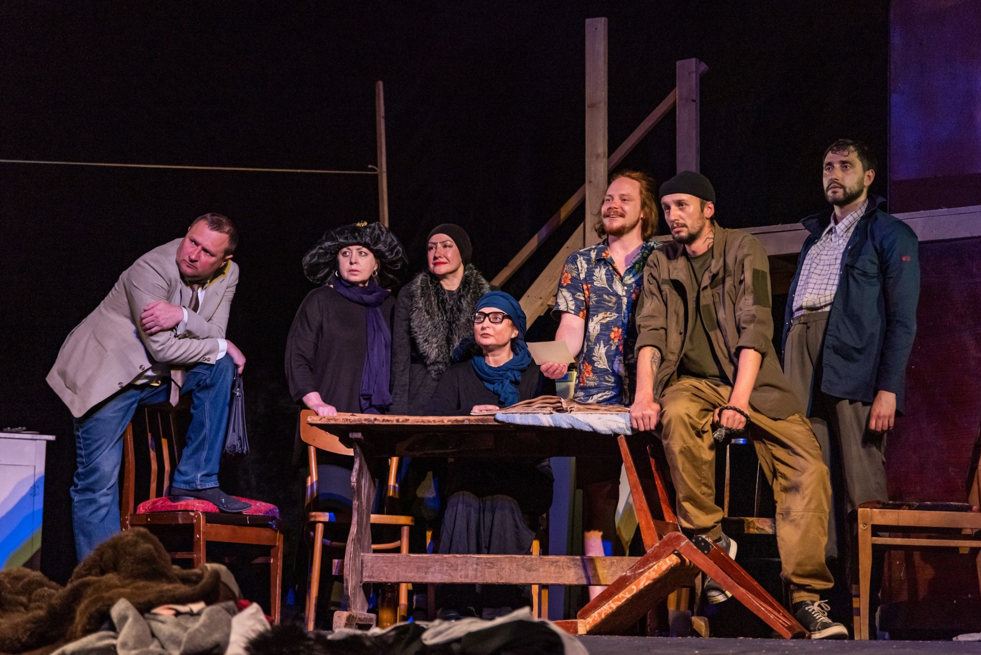 — За тиждень-два ми освоїлися у Вінниці і взялися робити концерт-виставу із переселенцями. Люди, як правило, сюди приїздять із бойових територій, і після пережитого жаху війни часто перебувають у пригніченому, розібраному стані. Тож аби додати трошечки позитиву, ми залучили всіх бажаючих до творчості. Дорослі і дітки від трьох рочків — всі, хто має талант, хист і бажання, були задіяні у драйвовому концерті, у який ми додали також фрагменти із вистав української класики: «Шельменко-денщик» Квітки-Основ'яненка та «Мина Мазайло» Миколи Куліша. Все представили у актовій залі Центру професійно-технічної освіти №1, фантастична дирекція якого нас дуже тепло і гостинно прийняла.