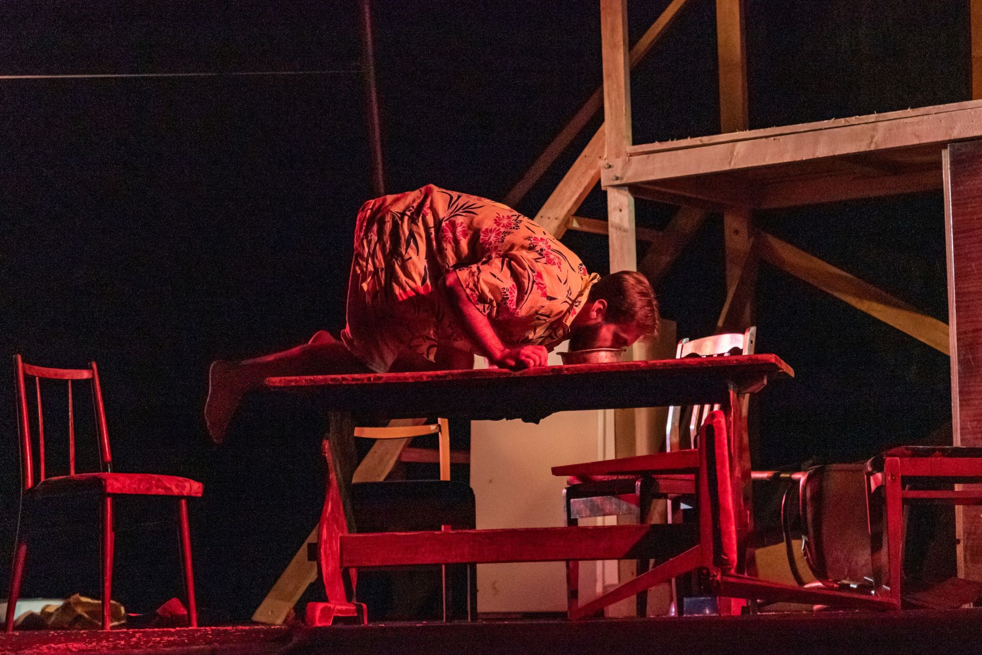 Що означає мертва мама на другому поверсі? Чому структура вистави саме така, а сценографія нагадує український вертеп? Чому головні персонажі — брати — так схожі на Каїна і Авеля, а три дивні фурії, що прийшли — паралелі з «Матінкою Кураж» Бертольда Брехта?..Ця вистава — робота для мозку, дає величезний діапазон для прочитання цієї п’єси.