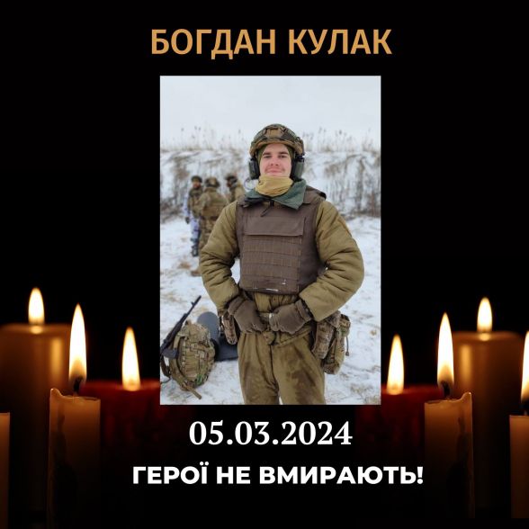 — З глибоким сумом повідомляємо про важку втрату: захищаючи Україну, загинув наш земляк, селищанин Богдан Сергійович КУЛАК. Йому було лише 20 років, — передає Гніванська міська рада.