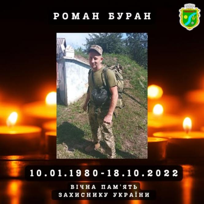 Життя Романа Бурана трагічно обірвалося 18 жовтня 2022 року. Він загинув біля Бахмуту внаслідок вибухової травми. Йому було лише 42 роки.