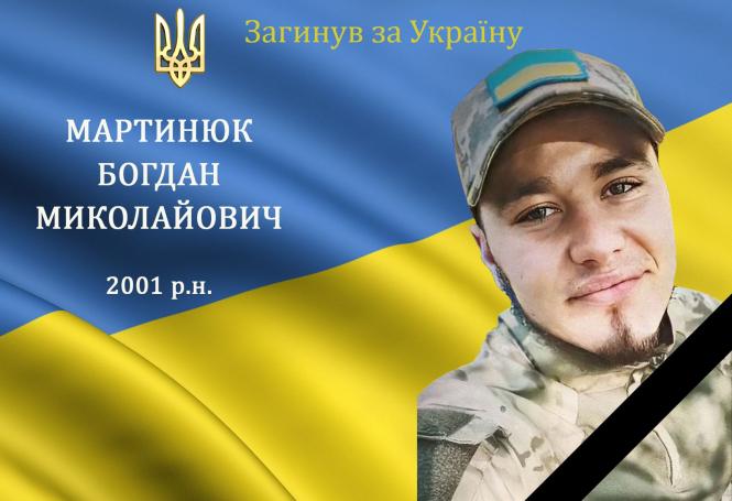 - Захищаючи територіальну цілісність та незалежність України, виявивши стійкість та мужність в боях за Батьківщину загинув військовий Богдан Мартинюк. Герою було 22 роки.