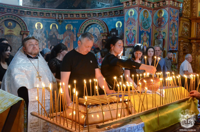 — Чин відспівування Михайла Богачука у Свято-Миколаївському храмі звершив митрополит Вінницький і Барський Симеон у співслужінні духовенства з Вінниці та Хмільницького благочиння. Разом з рідними і близькими за упокій загиблого Героя молилися керівники місцевого ОТГ, офіцери та військовослужбовці Калинівського полку Національної Гвардії України, — повідомляє Вінницько-Барська єпархія ПЦУ.