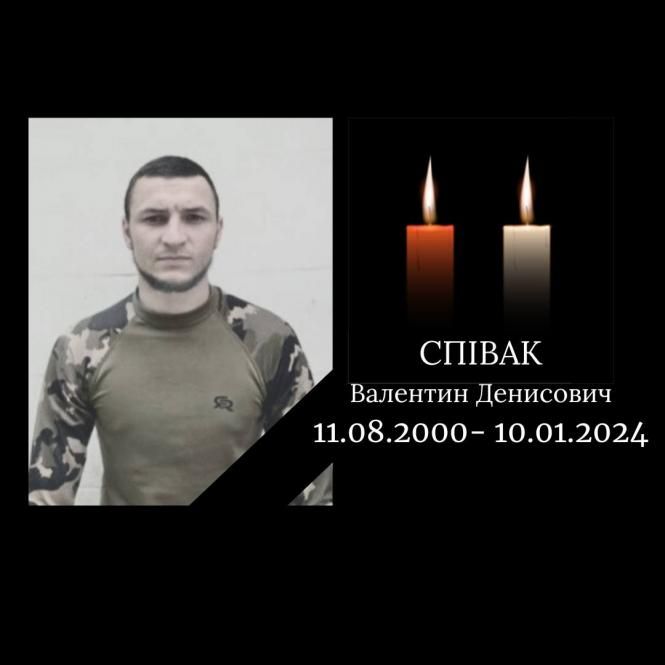 - Військовий Валентин Співак, 2000 року народження, загинув 10 січня 2024 року під час виконання бойового завдання в районі населеного пункту Вербове Запорізької області.