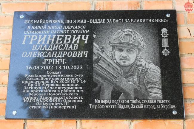 - В селі Переорки Вінницької області відкрили пам’ятну дошку герою бригади «Червона калина» солдату Владиславу Гриневичу.