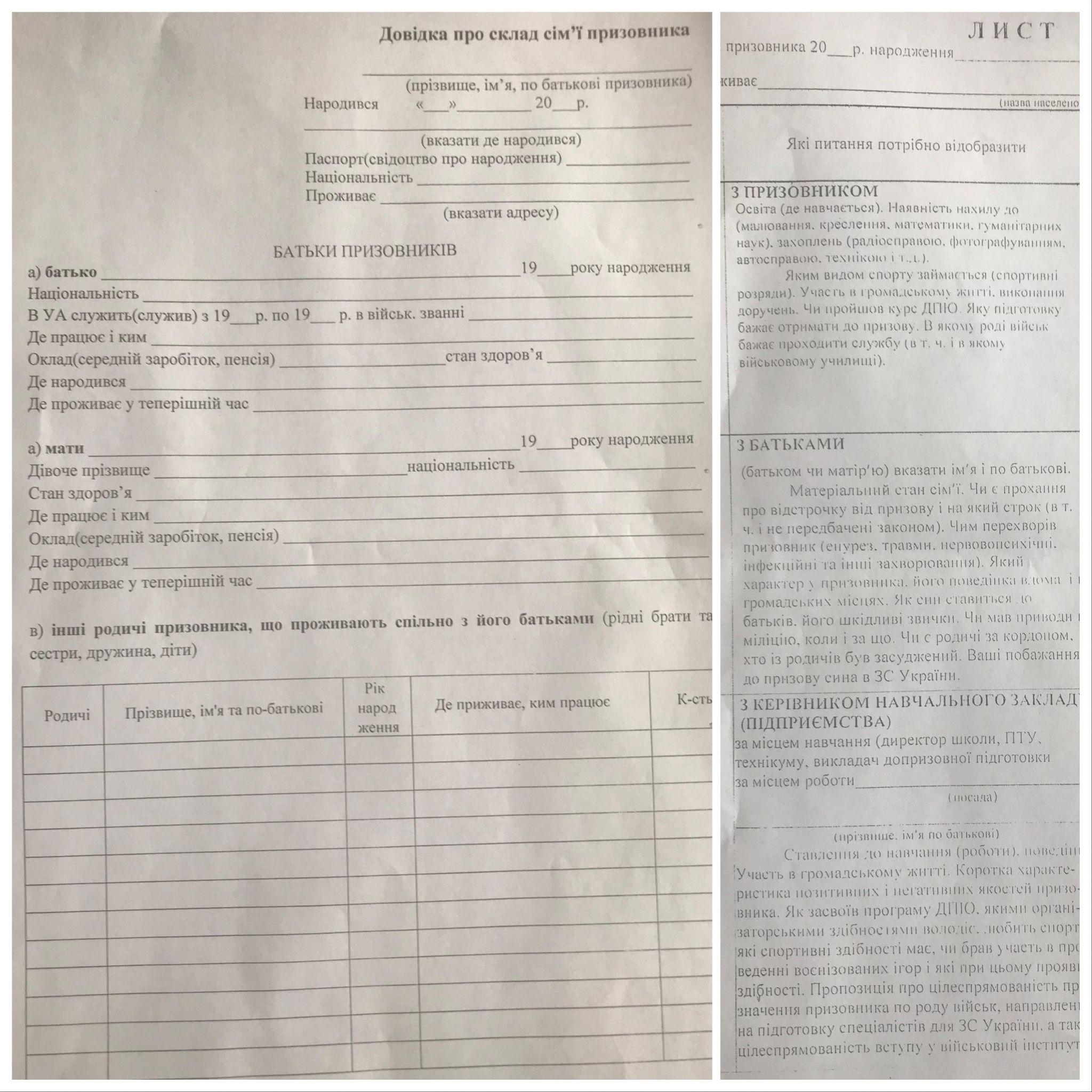 Цього літа сину 16 років виповнилося. Нещодавно він приніс додому кілька листочків А4, які треба заповнити і віднести до військкомату. На одному — «Довідка про склад сім’ї призовника», на іншому «Лист вивчення призовника». Сіли заповнювати, а там такі питання, що просто на голову не налазять. Військкомат хоче знати всі сімейні таємниці.