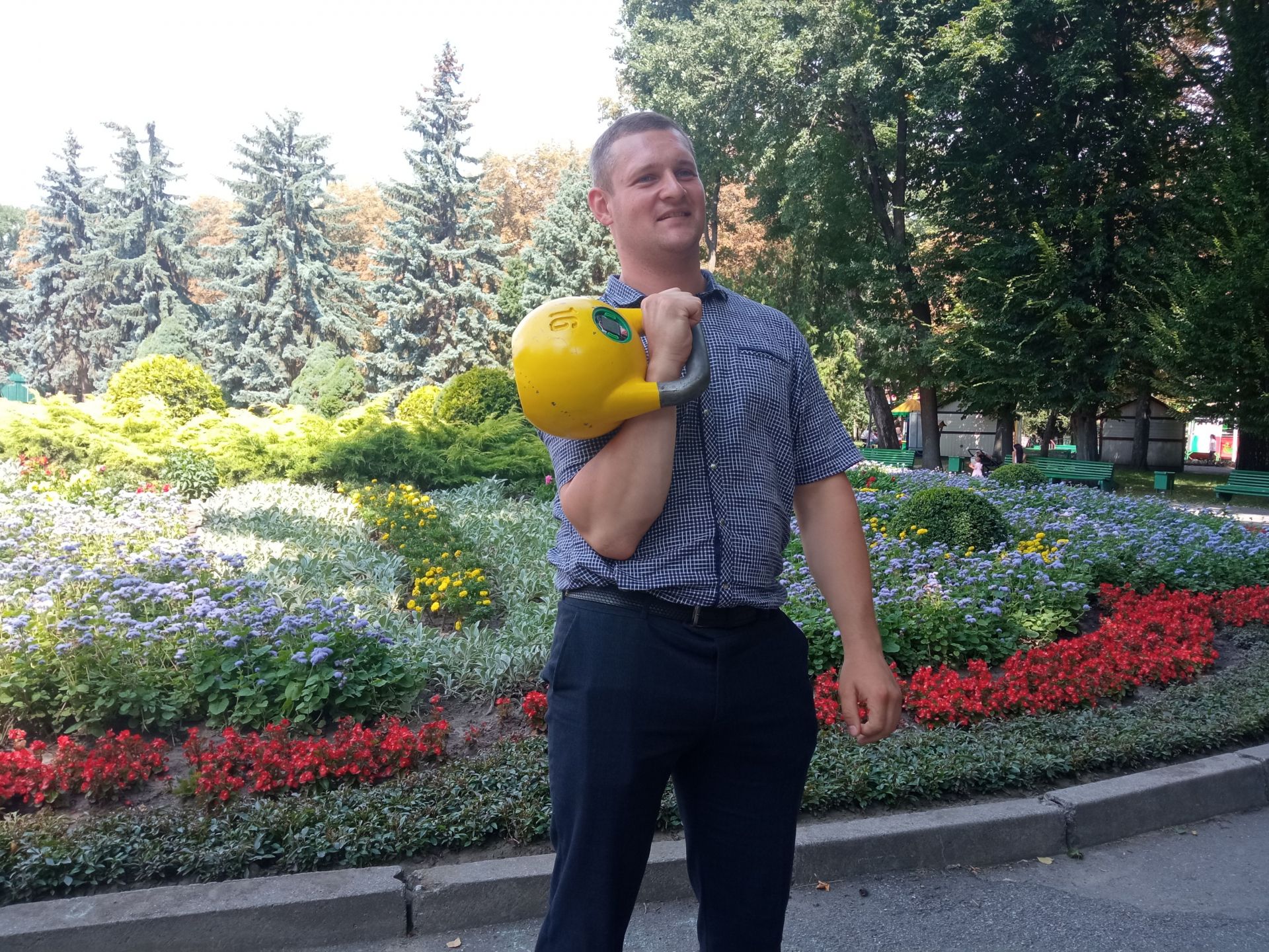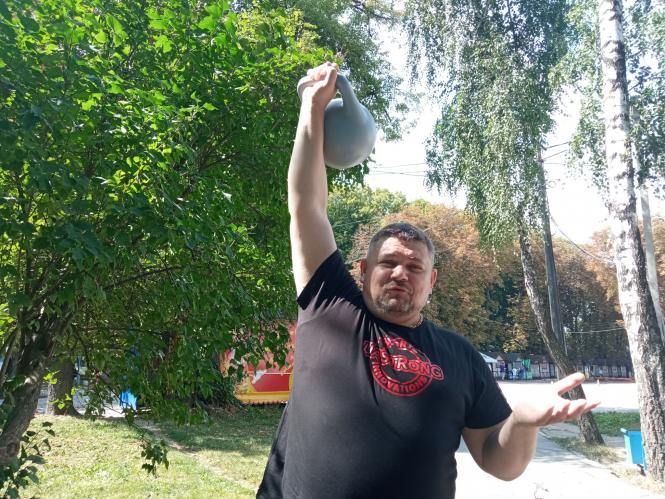 — За допомогою гирі можна виконувати вправи на руки, на ноги, на спину… Та й загалом все тіло залучене до тренування. Ще це хороша річ для спалювання маси та для покращення координації, — перераховує він переваги снаряду. — До прикладу, шестикілограмова гиря може підійти навіть дитині чи підлітку, щоб помаленьку опановувати цей вид спорту.