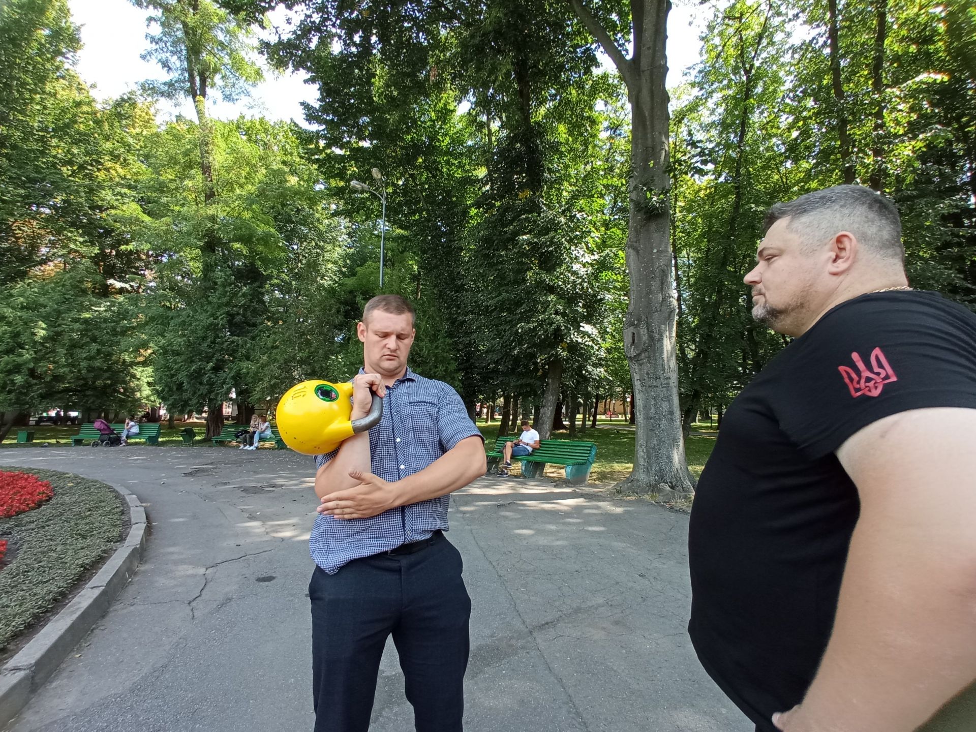 Нам пощастило потрапити на перше тестування гирі. До нас у парку приєднався професійний спортсмен, голова осередку гирьового спорту у Вінницькій області Василь Мацюк. Чоловік виконав кілька вправ, аби перевірити як саме їх визначає і рахує гиря.