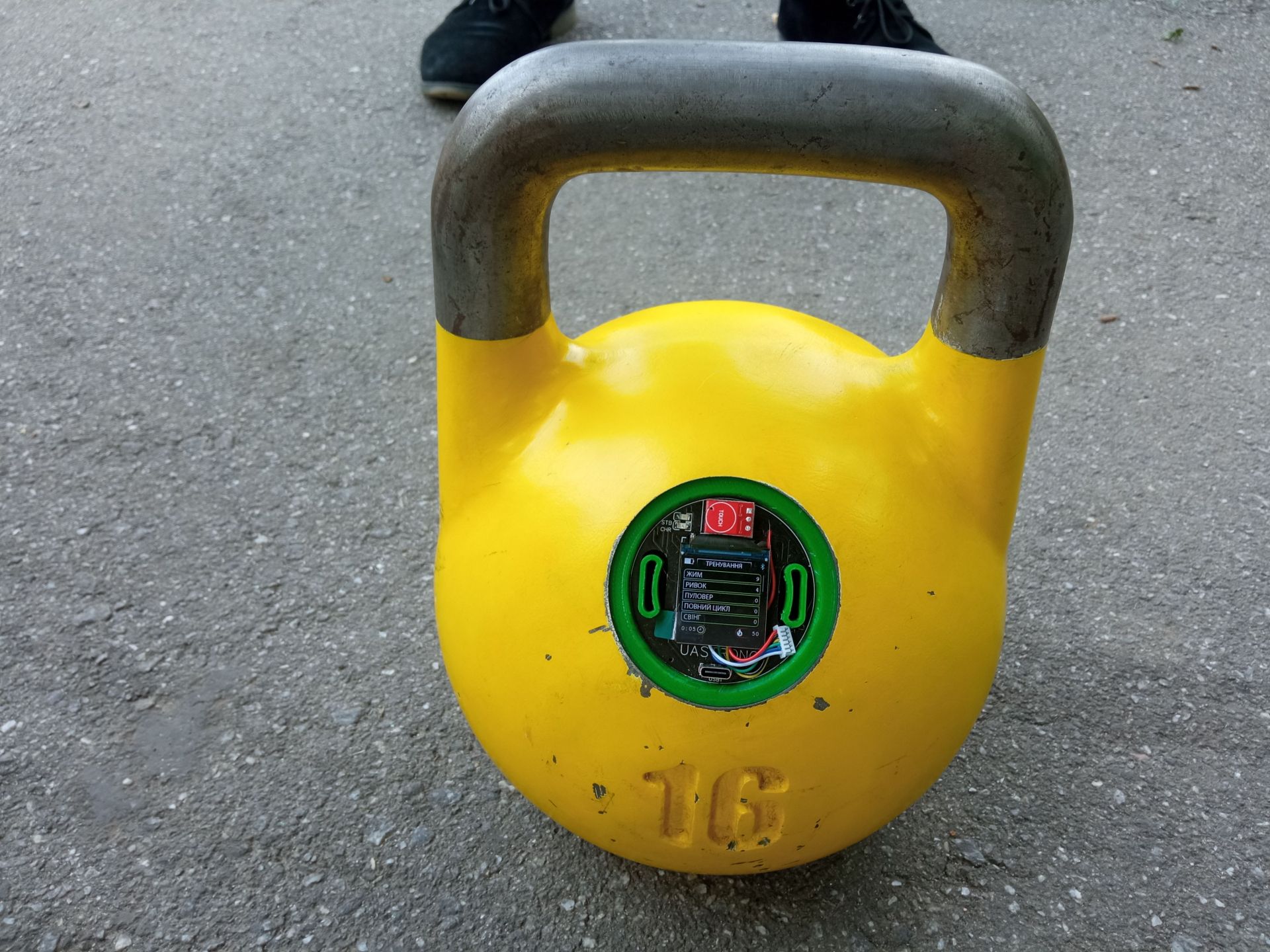 — Скажімо, сьогодні я прийшов впевнений, що гиря правильно порахує все, що зробить спортсмен. І вона ніби рахувала поштовхи, але не в тій фазі, що я планував. І це насправді не проблема, бо тепер я знаю, що потрібно змінити, щоб пристрій працював коректно, — зауважує розробник. — Мені, якщо говорити відверто, дуже хочеться, щоб цей проєкт продовжував жити. Зараз потихеньку триває процес патентування і нам, звичайно, хотілося б вийти на кікстартер чи інший майданчик зі своєю гирею, зробити такі снаряди не тільки для спортсменів, але й для широкого загалу. Бо ж, знову таки, гиря — це універсальний інструмент. Також ми маємо зробити спеціальні додатки, щоб допомогти усім охочим вести їхні віртуальні тренування: щоб був віртуальний тренер, про якого я згадував раніше, та спеціальні програми тренувань для різних потреб людей. І я собі планую, що це мають бути живі люди (трнери — прим. авт.), з якими ми й запишемо різнопланові тренування, щоб ледь не щодня можна було обирати іншого тренера і його програму.