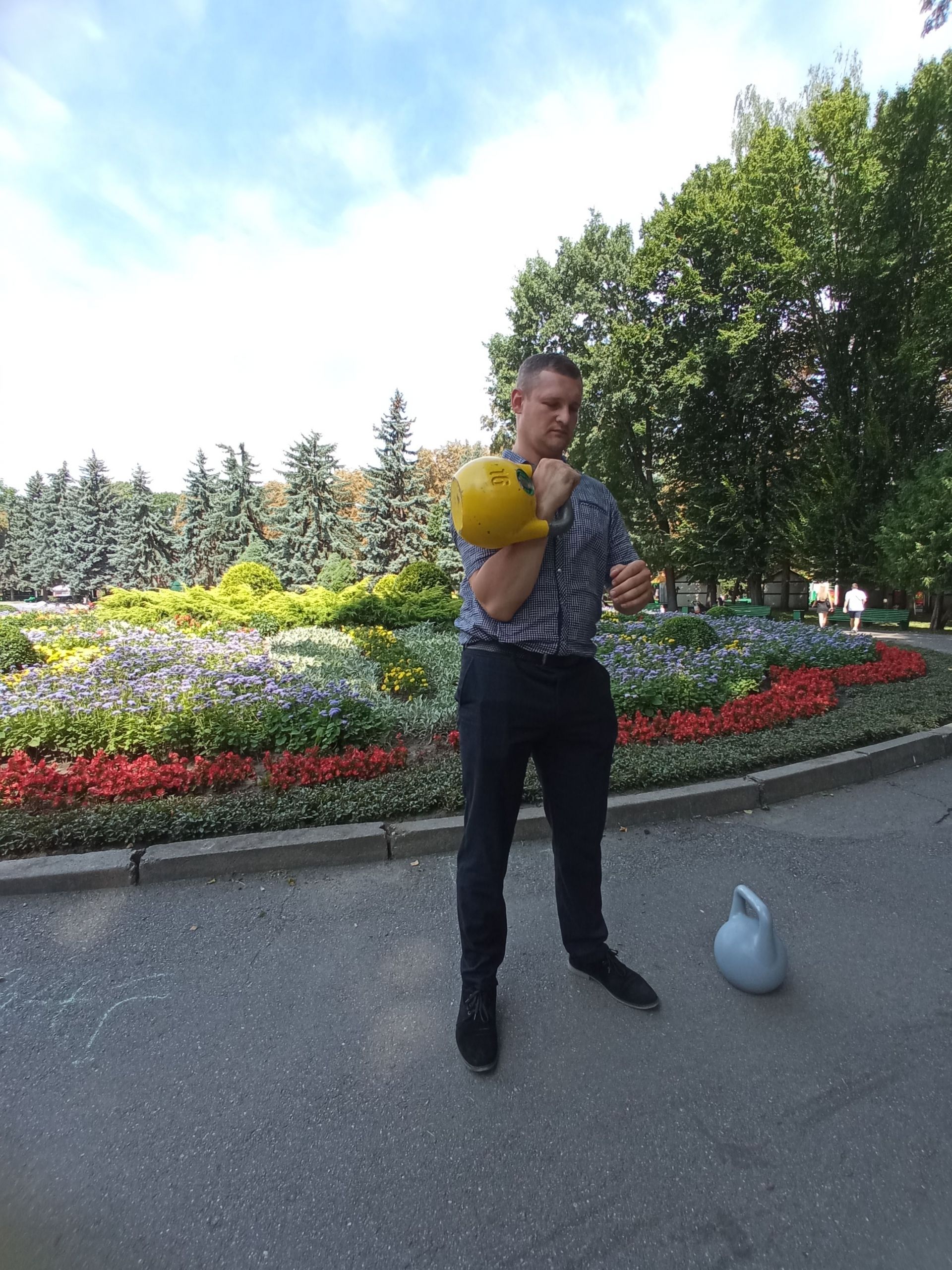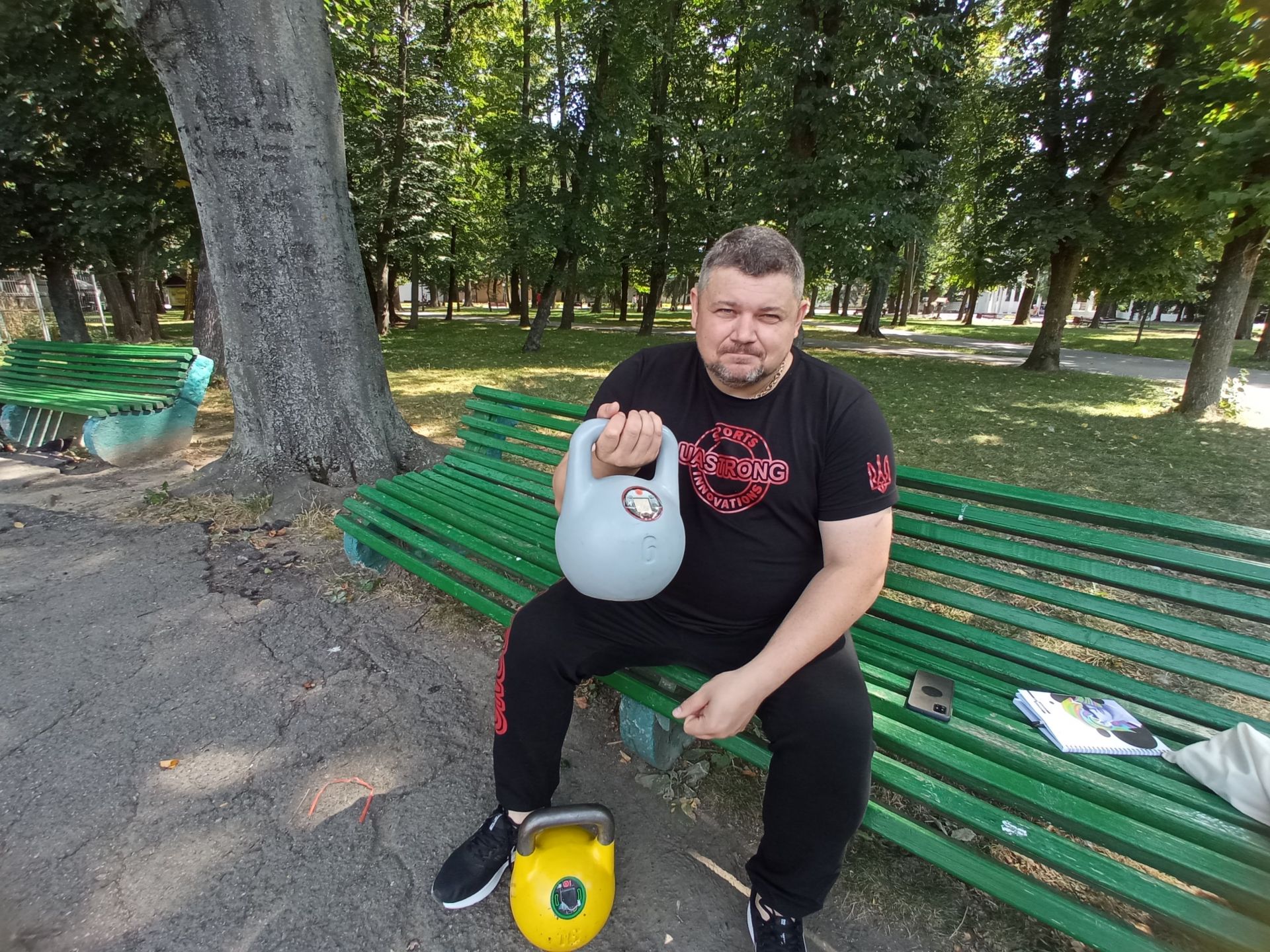Ми зустрічаємось з Андрієм Турко у Центральному парку імені Леонтовича. На зустріч чоловік приносить дві звичайні, на перший погляд, гирі — одна важить шість кілограмів, інша — 16. Та варто трохи уважніше до них придивитись і прислухатись, виявляється, що не все так просто.