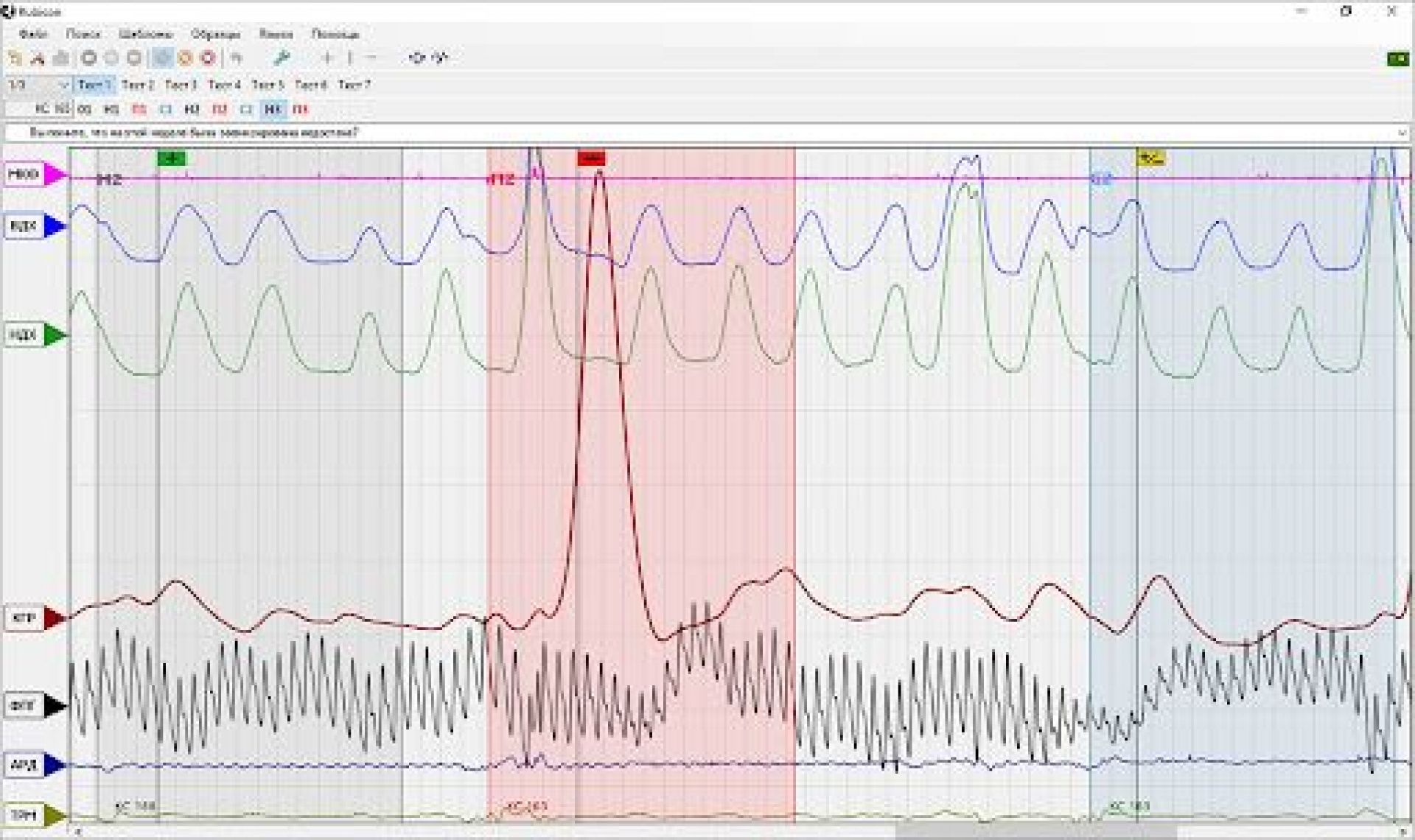 — Не зовсім коректний приклад, але зазвичай саме його я наводжу, коли пояснюю принцип дії поліграфа. Ось поліграма. Ми бачимо питання поліграфолога і відповідь респондента — у нього звичайна реакція — відповідь правдива. А ось інше питання та відповідь людини: бачимо різкий стрибок — це брехня