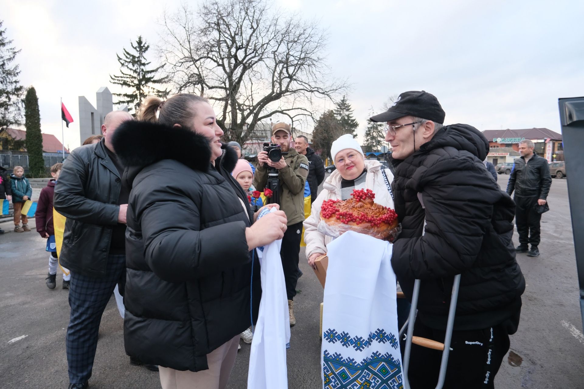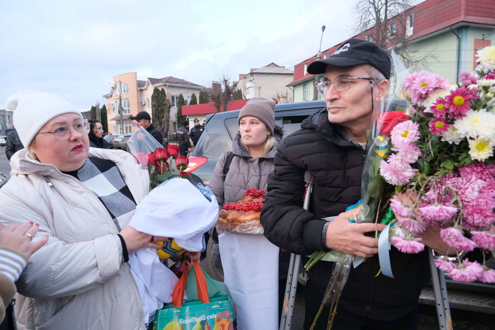 Момент зустрічі був сповнений щирих емоцій: сльози радості, теплі обійми та невимовна вдячність. Громада зустрічала Вадима Шрамка, як сина, з короваєм на вишиваному рушнику та квітами.