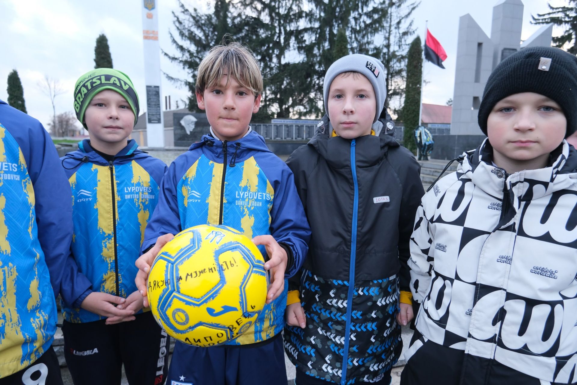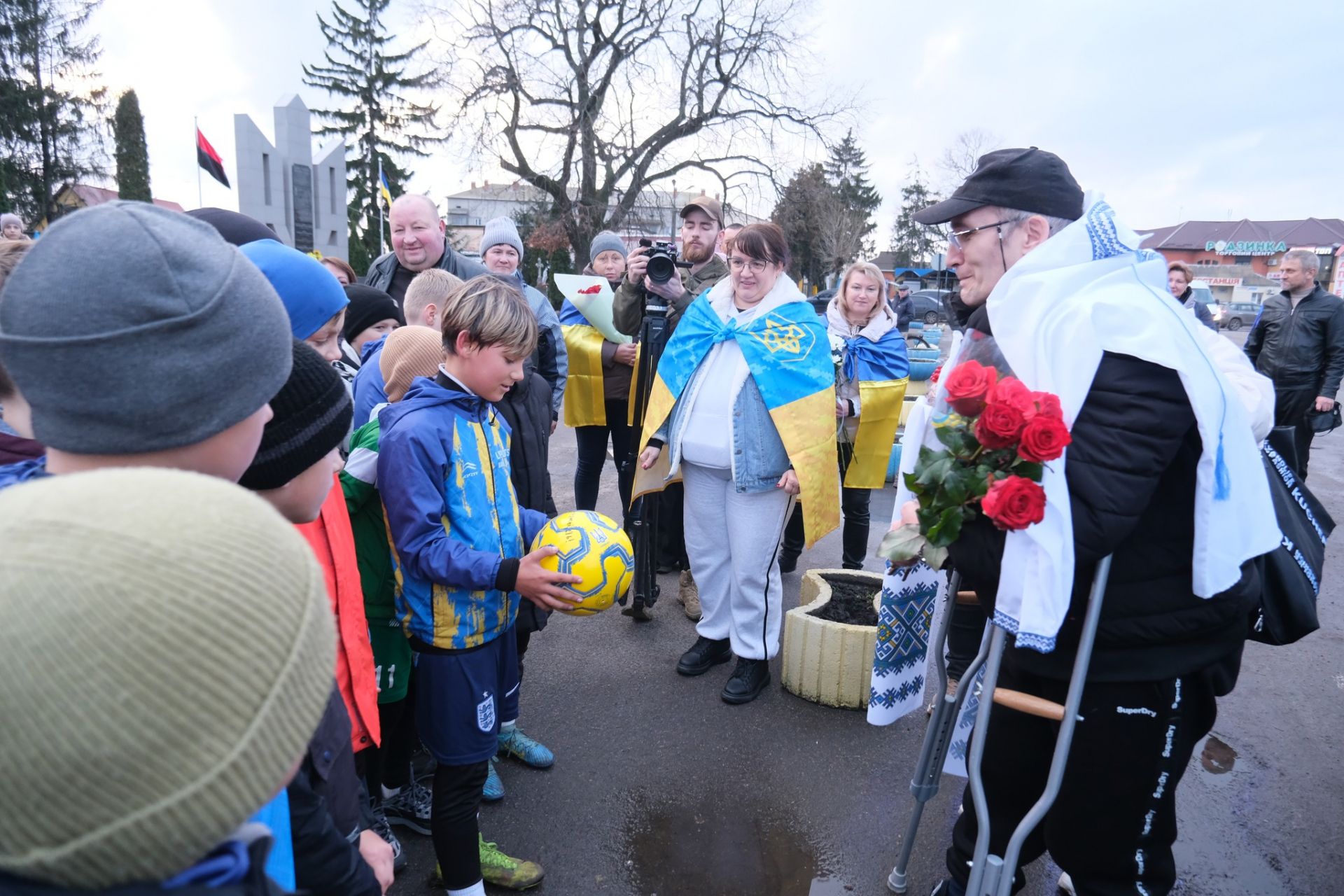 Особливо зворушливим був момент, коли до воїна підійшла футбольна команда юних чемпіонів, які вручили йому футбольний м'яч із написами «Дякуємо за мужність!» та «Слава Україні!».