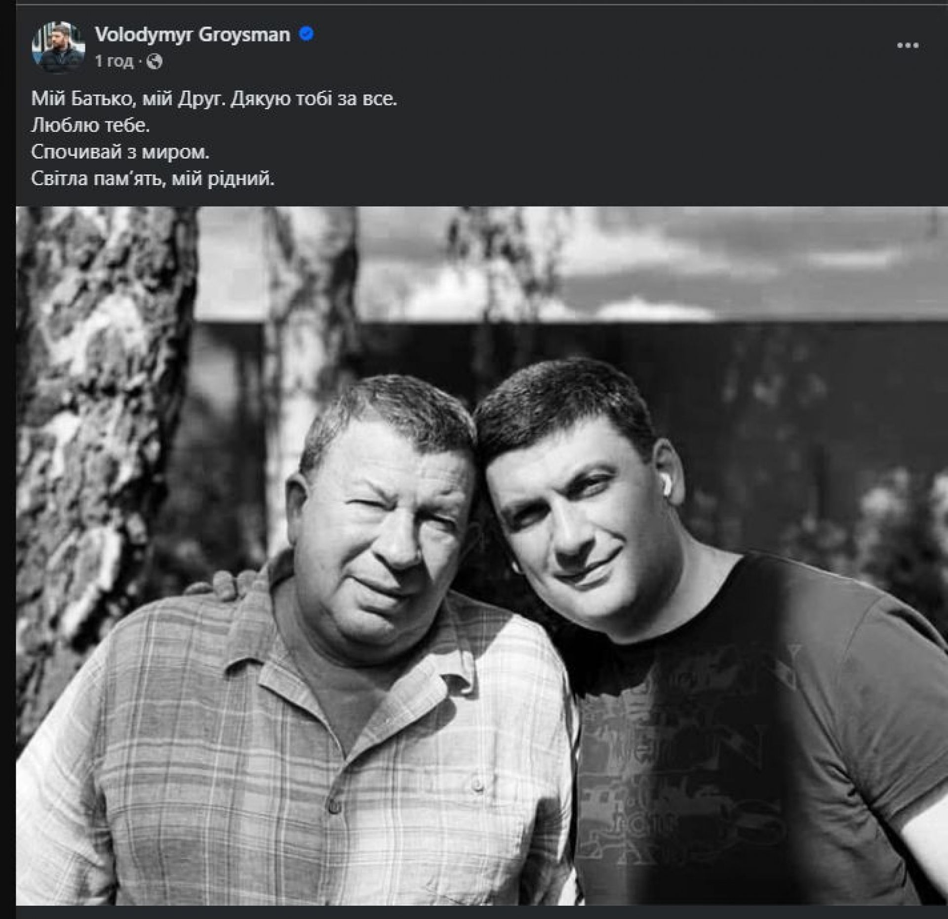 «Мій Батько, мій Друг. Дякую тобі за все. Люблю тебе. Спочивай з миром. Світла пам’ять, мій рідний», — йдеться в дописі.