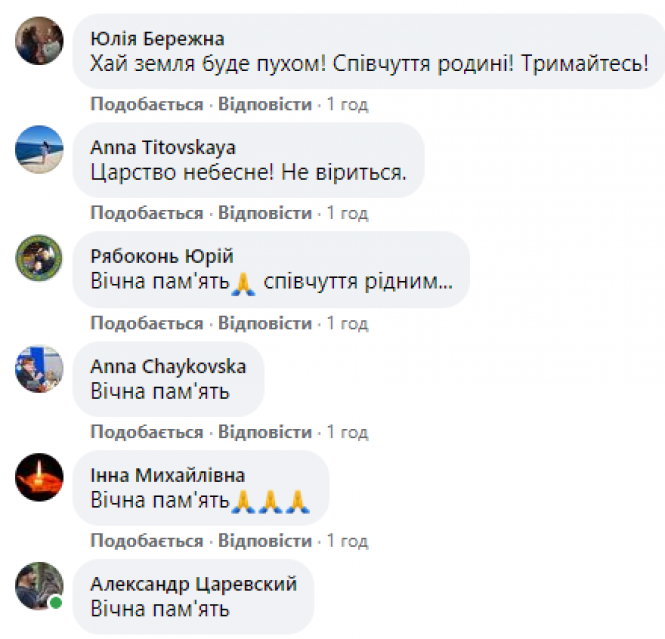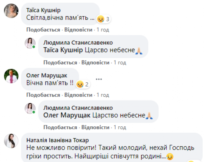 — Мої щирі спічуття родині Олександр Крученюк .... Ти був справжнім, Саша.... Дякую за дружбу і купу спільних крутих справ.... Светлана Крученюк тримайся .....Якщо потрібна моя допомога-я є.. — написала вона на ФБ.